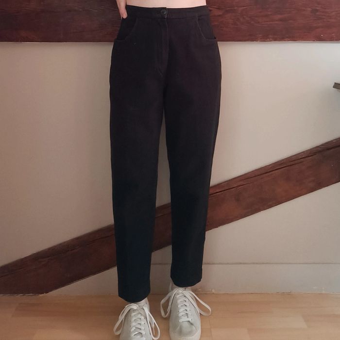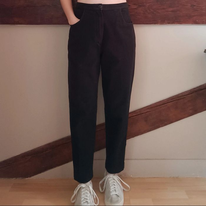 Pas d'envoi Vinted go ni UPS, merci - ✨ Pantalon noir taille haute coupe droite Camaïeu simple line vintage années 90 98% coton 2% élasthane Très bon état Taille 42 sur étiquette mais conviendra plutôt à une taille 36 actuelle Je le porte sur un 36 sur les photos et mesure 1m61 📏 Dimensions à plat : largeur taille 34cm, fourche 30cm, hanches 50cm, longueur totale 95cm, longueur à partir de l'entrejambe 67cm ⚠️ Étant une entreprise déclarée payant des charges, merci de respecter mon travail en ne le bradant pas 🙏 #desibellesfripes36