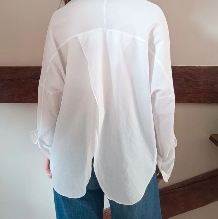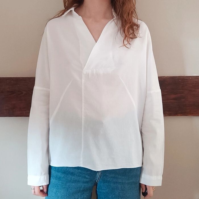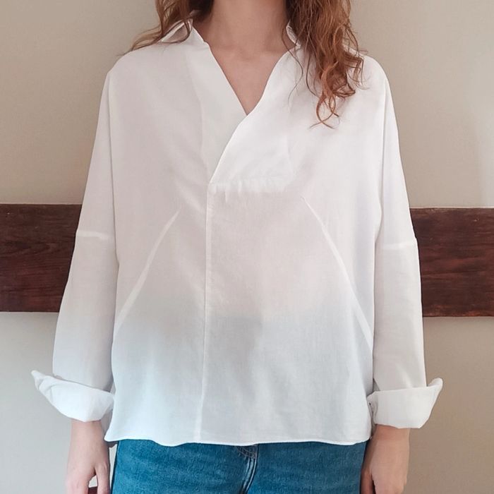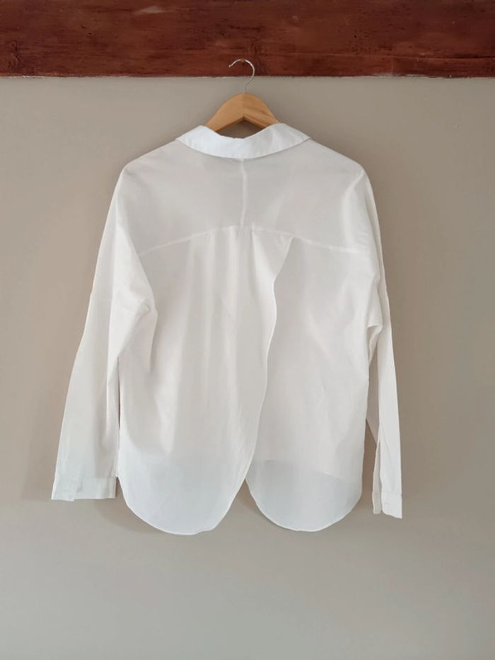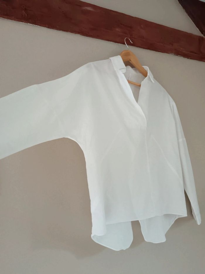 💐 Réductions sur les lots 💐 2 articles : -5% 3 & 4 articles : -10% 5 articles et plus : -15% Pas d'envoi Vinted go, merci ✨ Chemise à coupe ample oversize col V et fendue dans le dos en deux voiles Aucune étiquette, au toucher j'identifie un beau coton fin et léger, petite transparence Très bon état Taille 40 à 42 estimée Je la porte sur un 36 sur les photos et mesure 1m61 📏 Dimensions à plat : largeur poitrine 54cm, longueur devant 60cm, longueur dos 71cm ⚠️ Étant une entreprise déclarée payant des charges, merci de respecter mon travail en ne le bradant pas 🙏 #desibellesfripes40