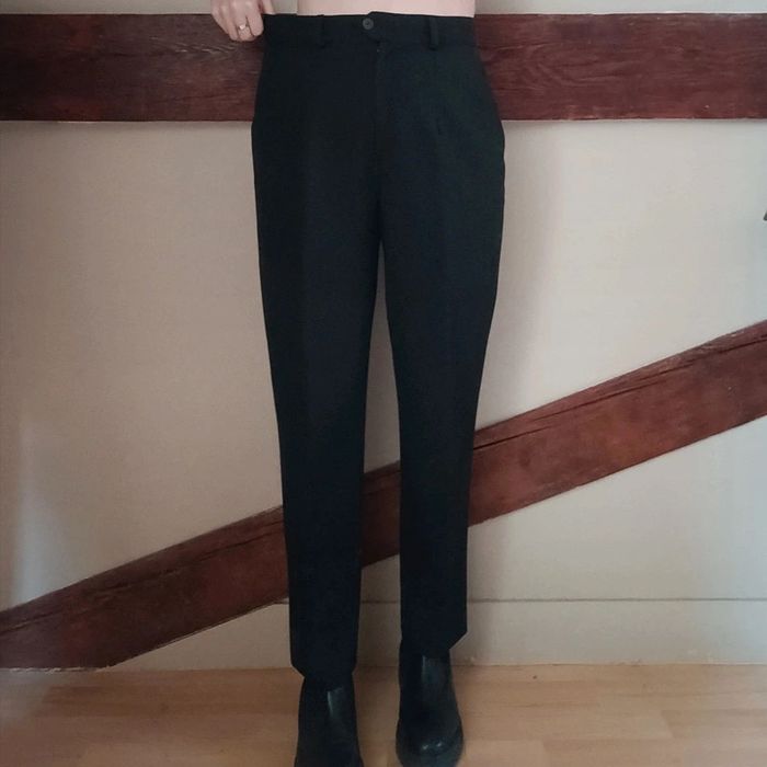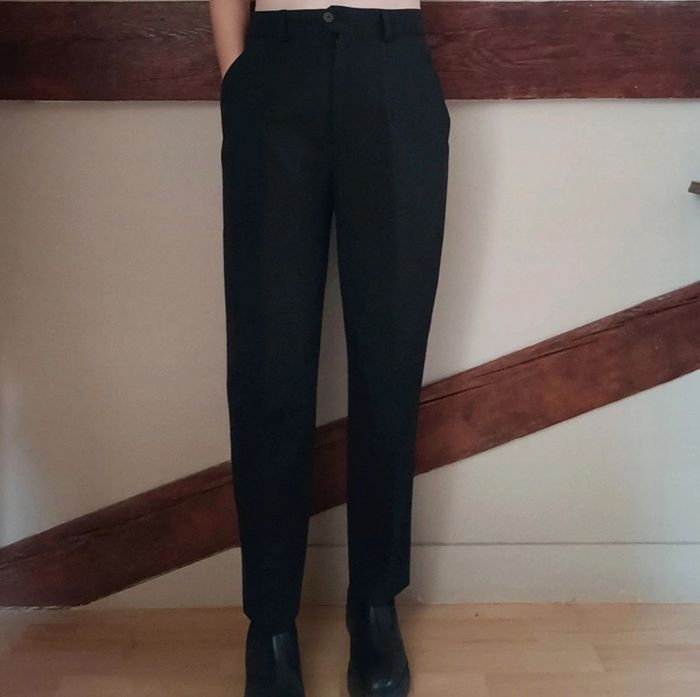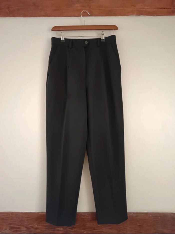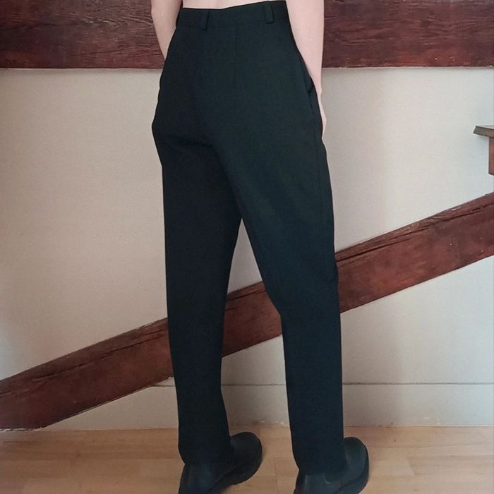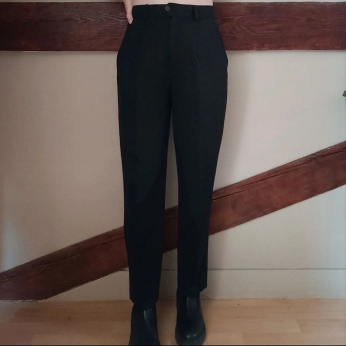 Pas d'envoi Vinted go, merci - ✨ Pantalon noir taille haute à pinces type tailleur, poches, passants ceinture Rosa Rosam, fabriqué en France années 80 à 90 54% polyester 44% laine 2% élasthane État impeccable Taille 38 sur étiquette mais conviendra plutôt à une taille grand 36 petit 38 actuelle Je le porte sur un 36 sur les photos et mesure 1m61 📏 Dimensions à plat : largeur taille 35cm, fourche 31cm, largeur hanches 52cm, longueur totale 96cm ⚠️ Étant une entreprise déclarée payant des charges, merci de respecter mon travail en ne le bradant pas 🙏 #desibellesfripes36 #desibellesfripes38