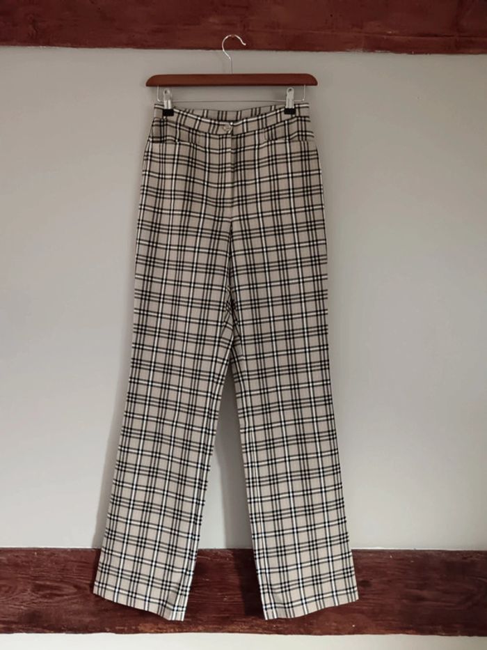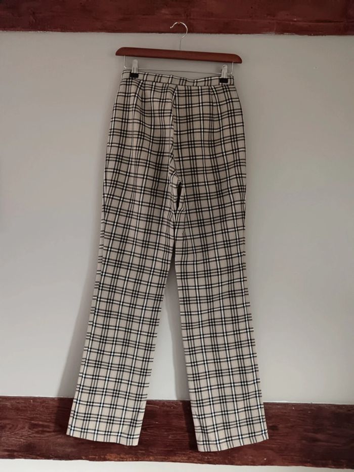 Pas d'envoi Vinted go, merci - ✨ Pantalon taille haute beige à rayures noires et blanches formant des carreaux, poche Il est ajusté à la taille, hanches et cuisses puis élargit sur le bas de jambe Années 2000 100% polyester Très bon état Taille 36 sur étiquette mais conviendra plutôt à une taille grand 34 petit 36 actuelle Je le porte sur un 36 sur les photos et mesure 1m61 📏 Dimensions à plat : largeur taille 33cm, fourche 27cm, hanches 44cm, longueur 102cm ⚠️ Étant une entreprise déclarée payant des charges, merci de respecter mon travail en ne le bradant pas 🙏 #desibellesfripes34 #desibellesfripes36