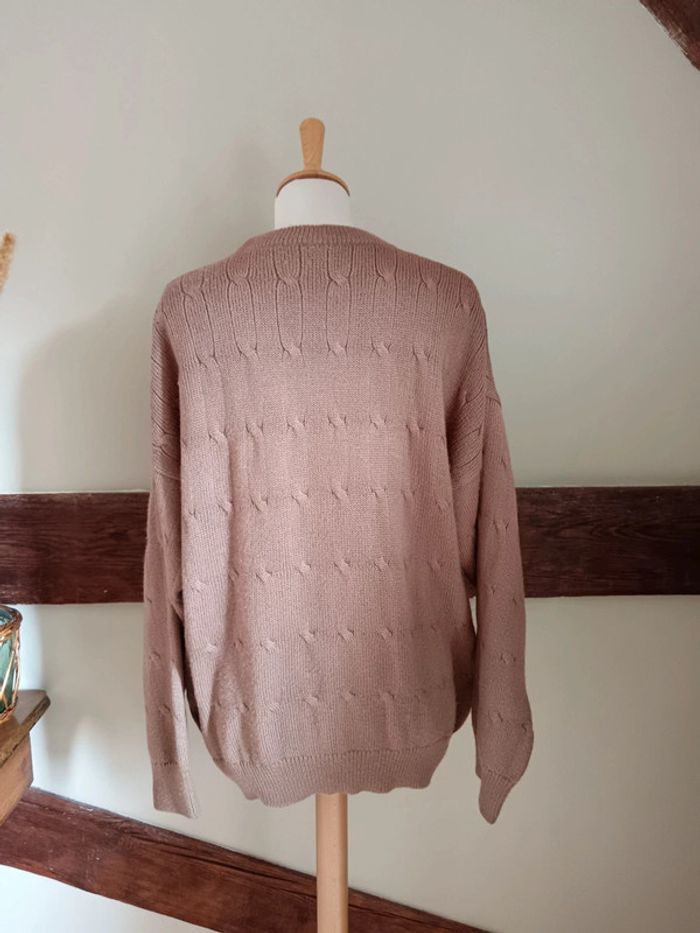 Pas d'envoi Vinted go, merci - ✨ Pull marron clair ample à torsades 100% acrylique matière douce et chaude Très bon état Taille 2 sur étiquette mais conviendra sans problème jusqu'au 42 avec un rendu oversize Je le porte sur un 36 sur les photos et mesure 1m61 📏 Dimensions à plat : largeur poitrine 59cm, longueur 67cm ⚠️ Étant une entreprise déclarée payant des charges, merci de respecter mon travail en ne le bradant pas 🙏 #desibellesfripes42