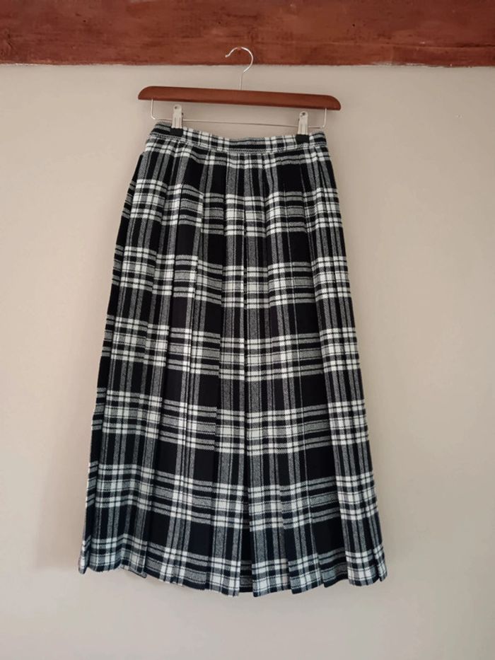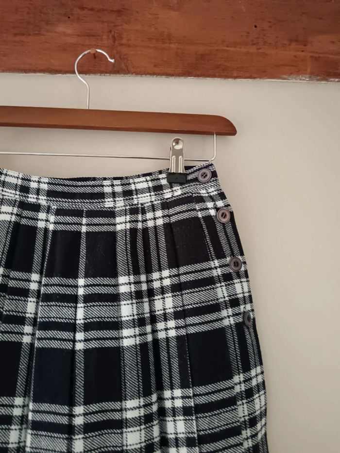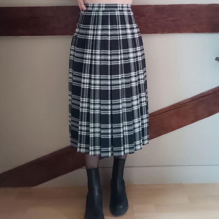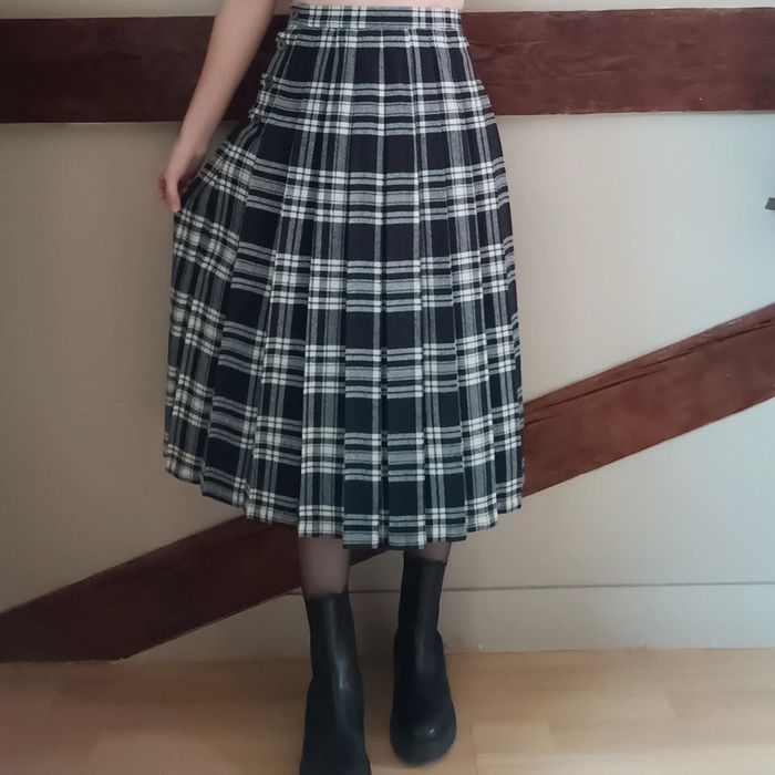 Pas d'envoi Vinted go, merci - ✨ Jupe taille haute mi-longue plissée à carreaux tartan noire et blanche, boutons hanches gauche Aucune étiquette matière, c'est un tissu épais imitation lainage mais je pense que c'est du synthétique, entièrement doublée polyester Très bon état, quelques toutes petites bouloches Taille petit 34 Je la porte sur un 36 sur les photos et mesure 1m61 📏 Dimensions à plat : largeur taille 31.5cm, longueur 76cm ⚠️ Étant une entreprise déclarée payant des charges, merci de respecter mon travail en ne le bradant pas 🙏 #desibellesfripes34