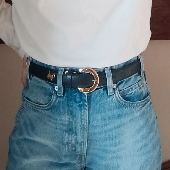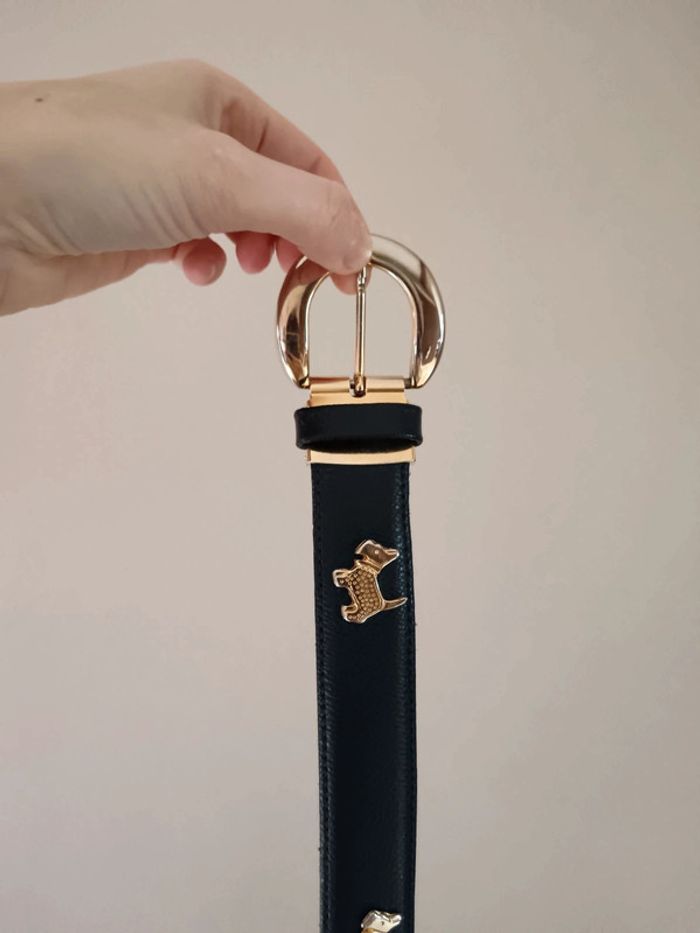 Pas d'envoi Vinted go, merci - ✨ Ceinture bleu marine foncé effet lézard à boucle et petits chiens dorés métalliques Chipie, made in France Croûte de vachette doublé synthétique À noter deux trous légèrement marqués ayant déjà été utilisés ainsi que de petites rayures sur la boucle, voir les photos Taille 70 soit une taille 34 📏 Dimensions : tour de taille de 68 à 78cm, largeur 2,5cm ⚠️ Étant une entreprise déclarée payant des charges, merci de respecter mon travail en ne le bradant pas 🙏 #desibellesfripes34