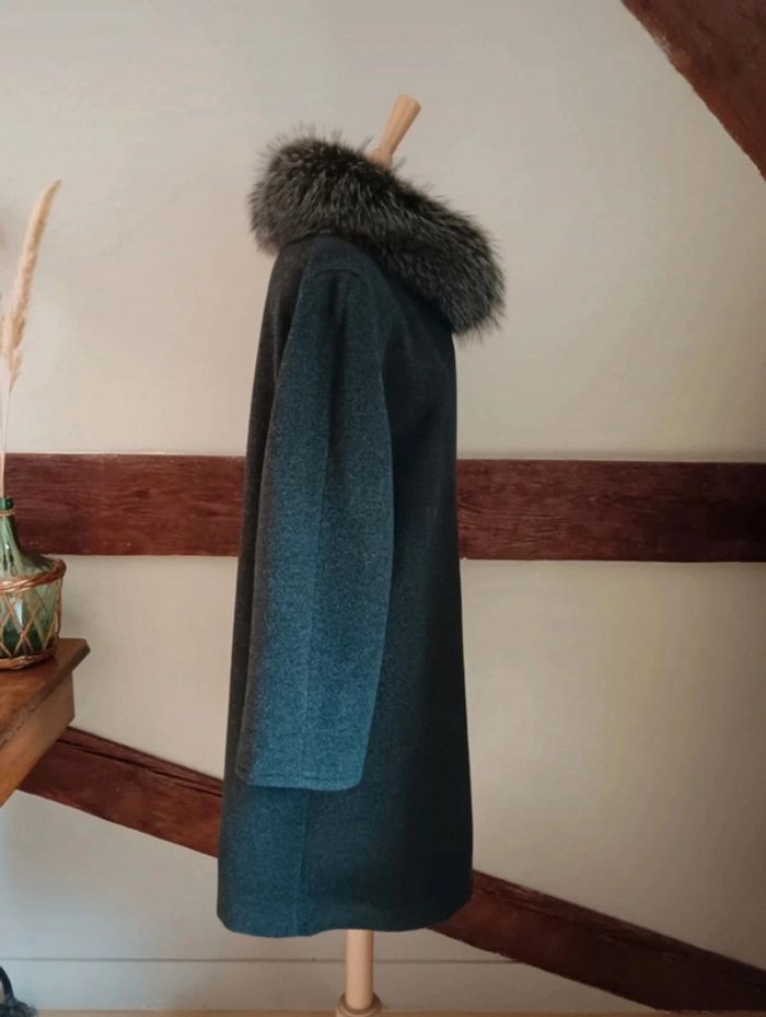 Manteau laine Maryvonne gris foncé col fourrure - photo numéro 14