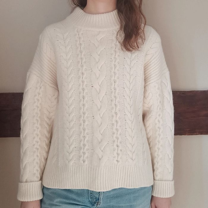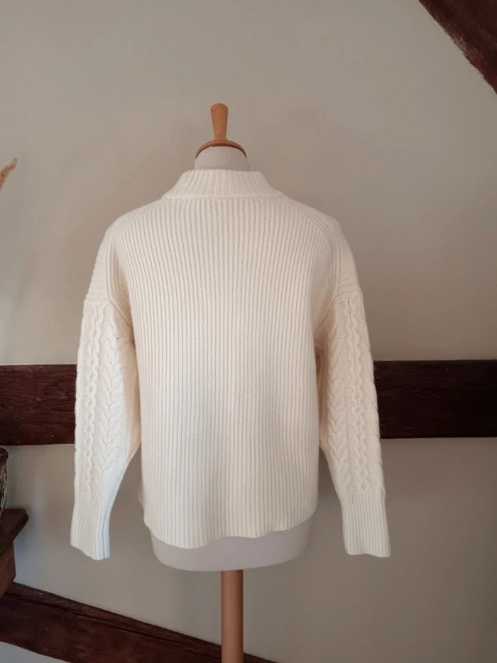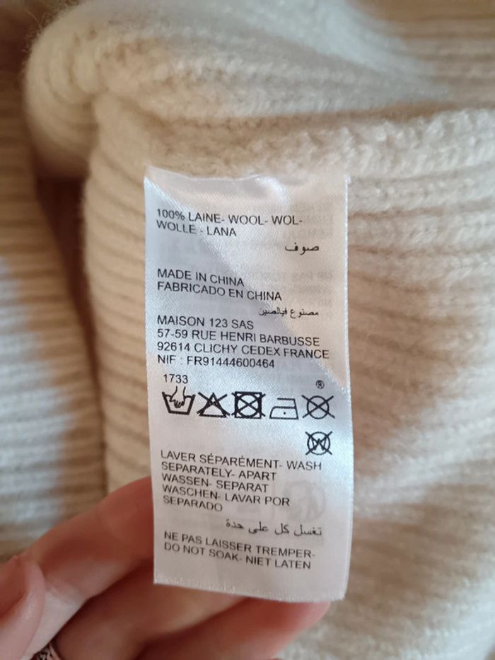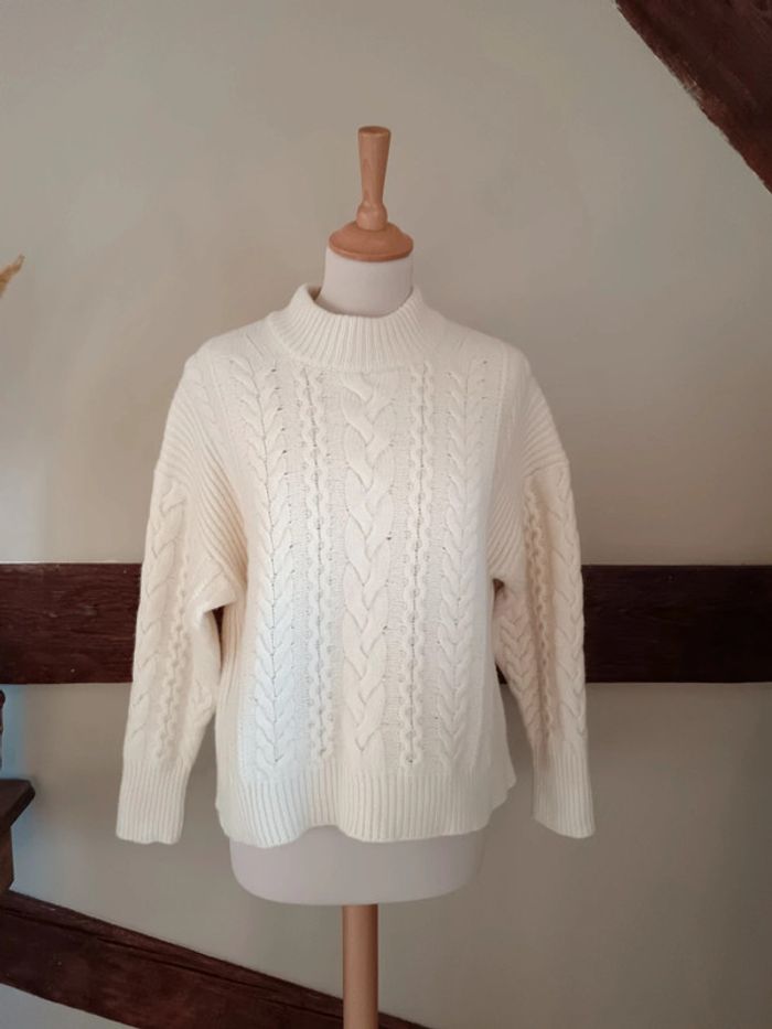 Pas d'envoi Vinted go, merci - ✨ Pull épais coupe courte et large blanc à torsades, col montant Maison 123 100% laine très douce et chaude Très bon état Taille 42 Je le porte sur un 36 sur la photo et mesure 1m61 📏 Dimensions à plat : largeur poitrine 54cm, longueur 57cm ⚠️ Étant une entreprise déclarée payant des charges, merci de respecter mon travail en ne le bradant pas 🙏 #desibellesfripes42