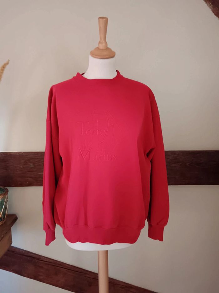 Pas d'envoi Vinted go, merci - ✨ Sweat rouge à broderie bateau, phare et inscription "terre de marins" sur le devant Terre de Marins 100% coton Porté, reste en très bon état, le rouge semble avoir perdu un peu de son vif Taille L soit une taille 40 avec un rendu ample oversize Je le porte sur un 36 sur la photo et mesure 1m61 📏 Dimensions à plat : largeur taille 58cm, longueur 64cm ⚠️ Étant une entreprise déclarée payant des charges, merci de respecter mon travail en ne le bradant pas 🙏 #desibellesfripes40