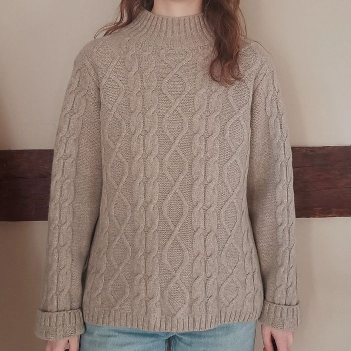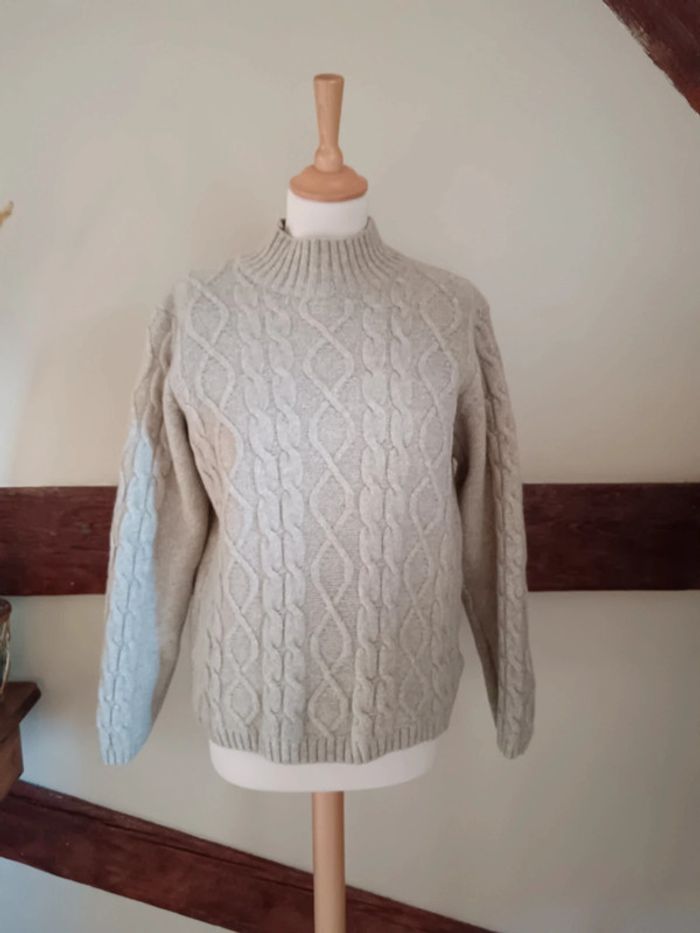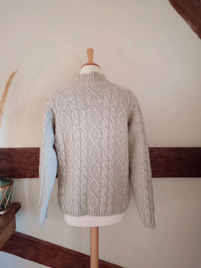 Pas d'envoi Vinted go, merci - ✨ Pull épais beige à col montant entièrement torsadé cable knit Cyrillus 100% laine d'agneau mais épaisse, le pull est assez lourd Légèrement feutré mais rien de grave, il reste très agréable à porter Taille 4 sur étiquette mais conviendra plutôt à une taille 40 porté ajusté ou 38 porté légèrement ample 📏 Dimensions à plat : carrure 42cm, largeur poitrine 50cm, longueur 61cm, longueur manches 58cm ⚠️ Étant une entreprise déclarée payant des charges, merci de respecter mon travail en ne le bradant pas 🙏 #desibellesfripes38 #desibellesfripes40