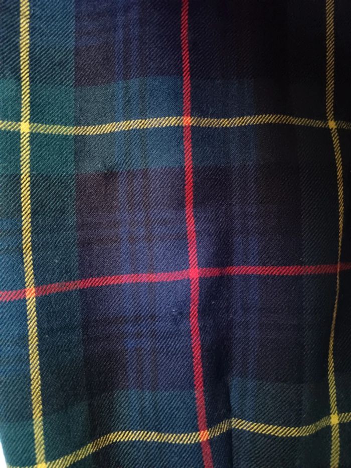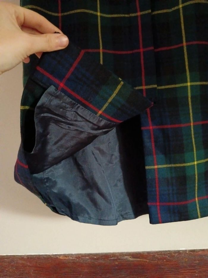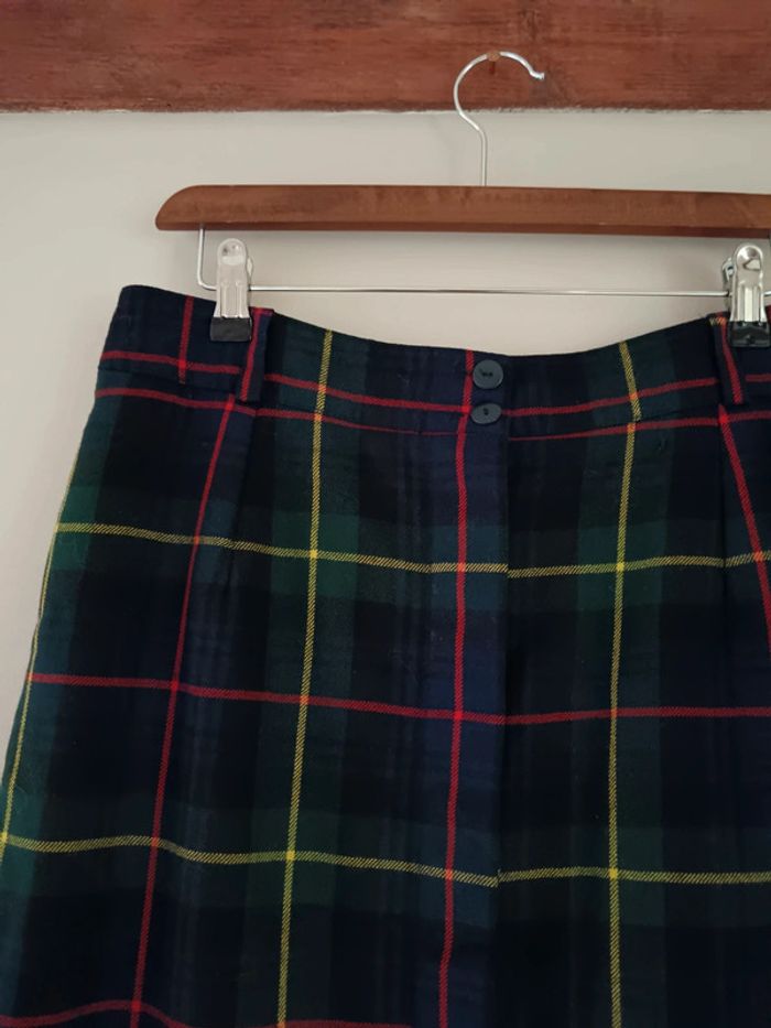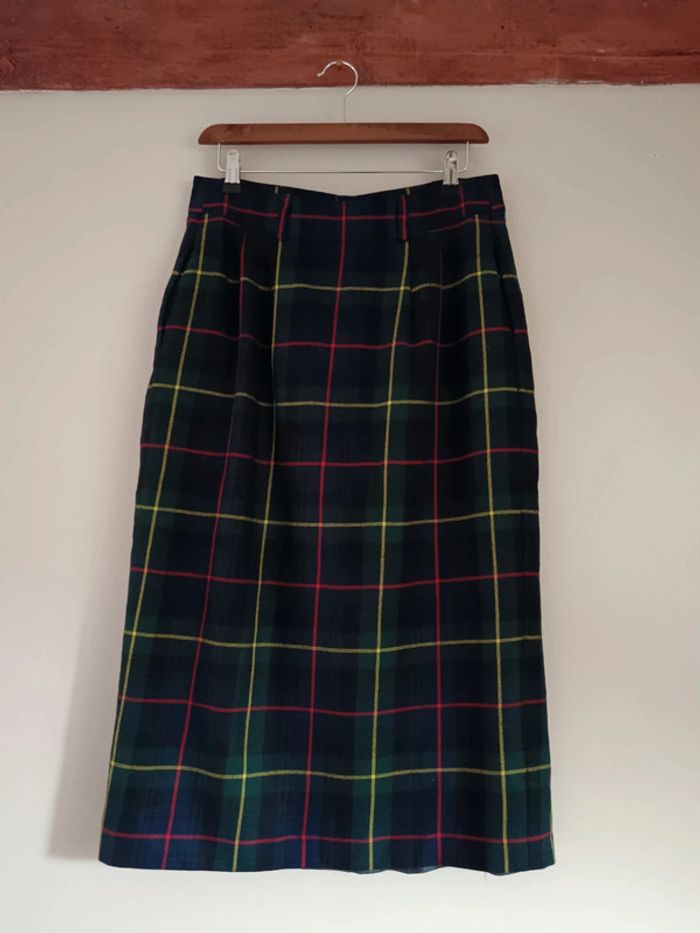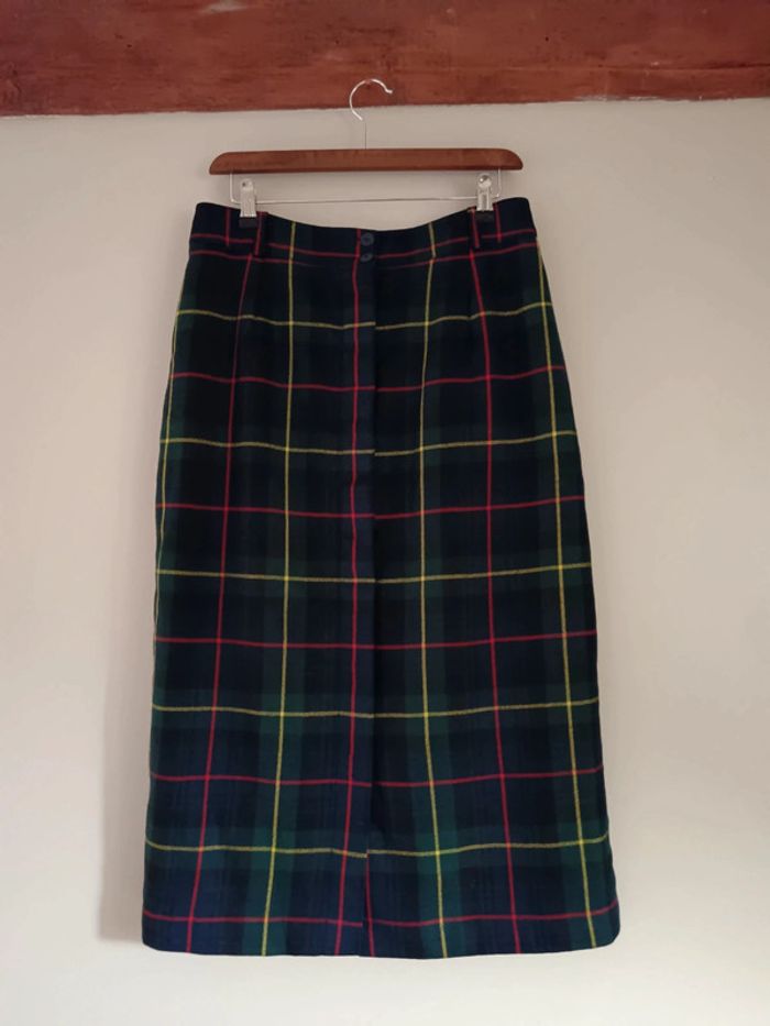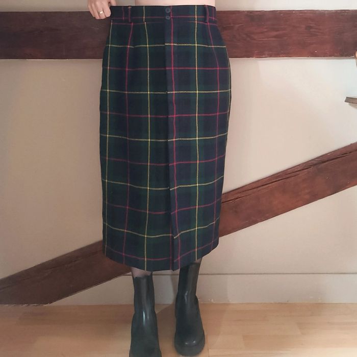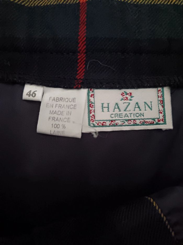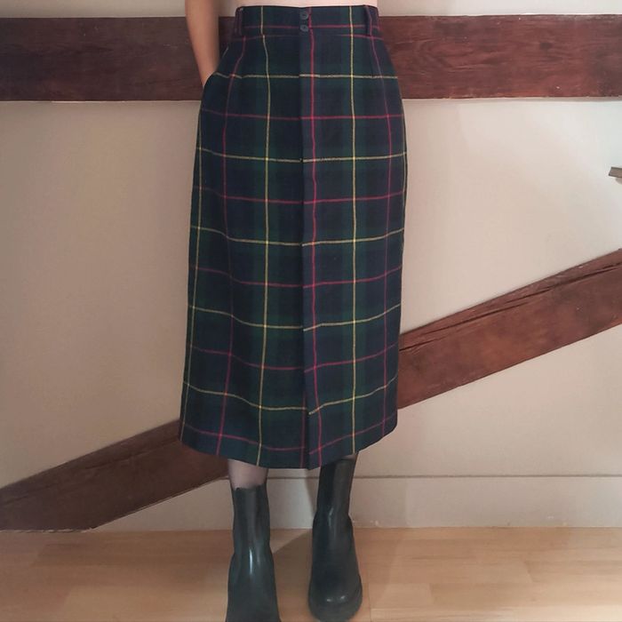 Pas d'envoi Vinted go, merci - ✨ Jupe mi-longue taille haute motif à carreaux tartan fond bleu marine et vert foncé avec rayures jaunes et rouges Poches et passants ceinture Patte de boutonnage sur le devant Hazan Création, fabriqué en France 100% laine, entièrement doublée Très bon état, deux petits accrocs légers ont été renforcés sur le devant, peu visible (voir les dernières photos) Taille 46 sur étiquette mais conviendra plutôt à une taille 42 actuelle Je la porte sur un 36 sur les photos et mesure 1m61 📏 Dimensions à plat : largeur taille 40cm, largeur hanches 56cm, longueur 80cm ⚠️ Étant une entreprise déclarée payant des charges, merci de respecter mon travail en ne le bradant pas 🙏 #desibellesfripes42