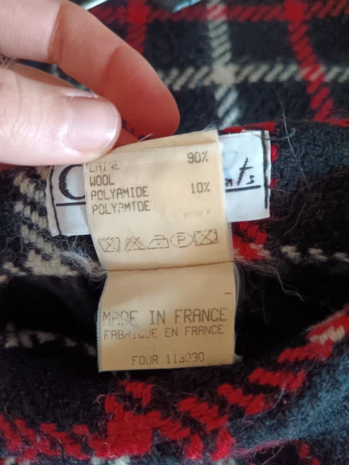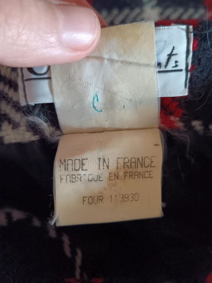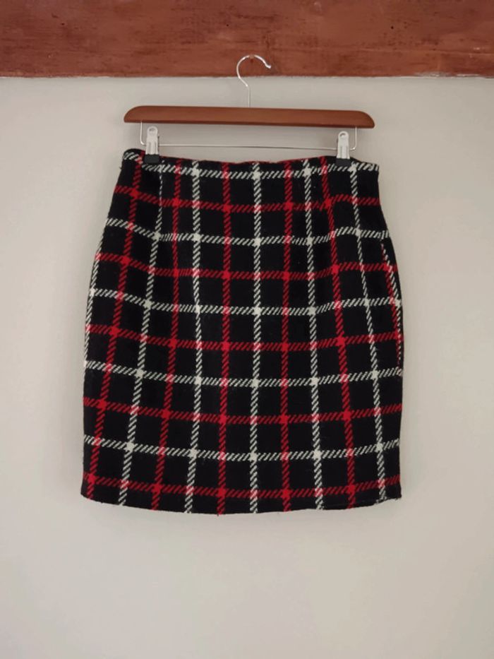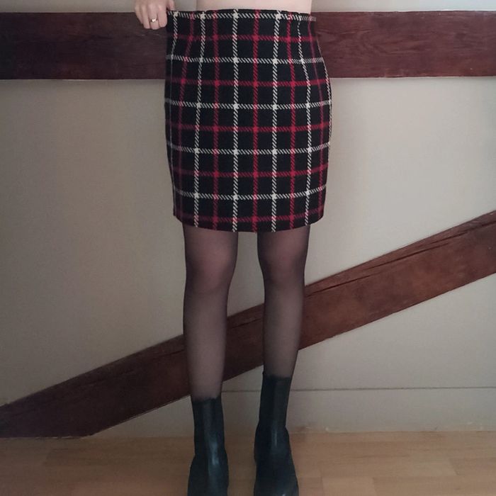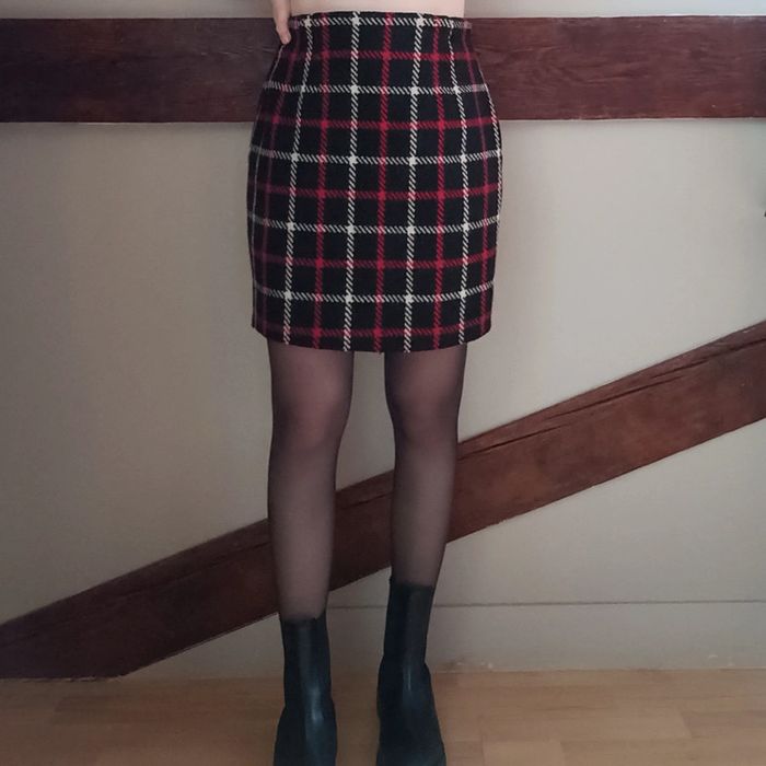 Pas d'envoi Vinted go, merci - ✨ Jupe courte taille haute à coupe droite noire à rayures rouges et blanches formant des carreaux Zip dans le dos Chuchotements, made in France 90% laine 10% polyamide tissu type tweed, entièrement doublé Très bon état Taille 42 sur étiquette mais conviendra plutôt à une taille 38 actuelle, je la porte sur un 36 sur les photos et mesure 1m61 📏 Dimensions à plat : largeur taille 36cm, largeur hanches 49cm, longueur 45cm #desibellesfripes38