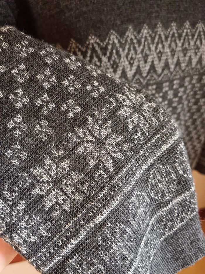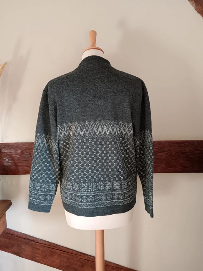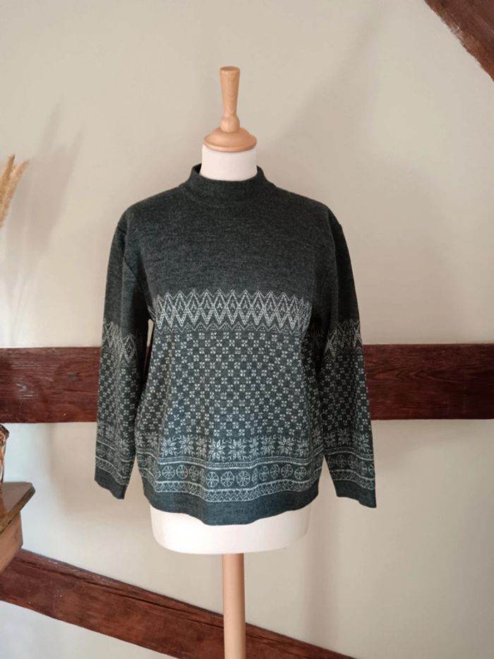 Pas d'envoi Vinted go, merci - ✨ Pull gris anthracite à petit col montant motifs jacquard et flocons de neige gris clair Style Noël, ski... Phildar 50% laine 50% acrylique Très bon état Taille 38 taillant grand ok 40 également, je le porte sur un 36 sur les photos et mesure 1m61 📏 Dimensions à plat : carrure 42cm, largeur poitrine 50cm, longueur 58cm, longueur manches 52cm #desibellesfripes38 #desibellesfripes40