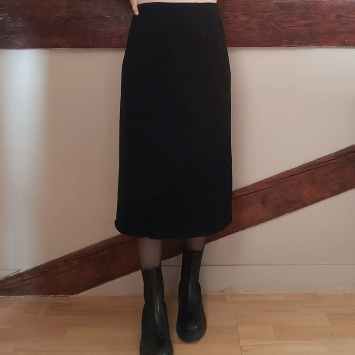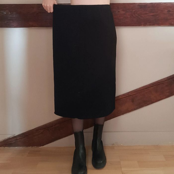 Pas d'envoi Vinted go, merci - ✨ Jupe mi-longue taille haute en maille noire, taille élastique Lewinger années 90 environ 50% laine 50% acrylique, doublée État impeccable Taille 48 sur étiquette mais conviendra plutôt à une taille 40 ou 42 actuelle Je la porte sur un 36 sur les photos et mesure 1m61 📏 Dimensions à plat : largeur taille 38 à 54cm, longueur 71cm ⚠️ Étant une entreprise déclarée payant des charges, merci de respecter mon travail en ne le bradant pas 🙏 #desibellesfripes42
