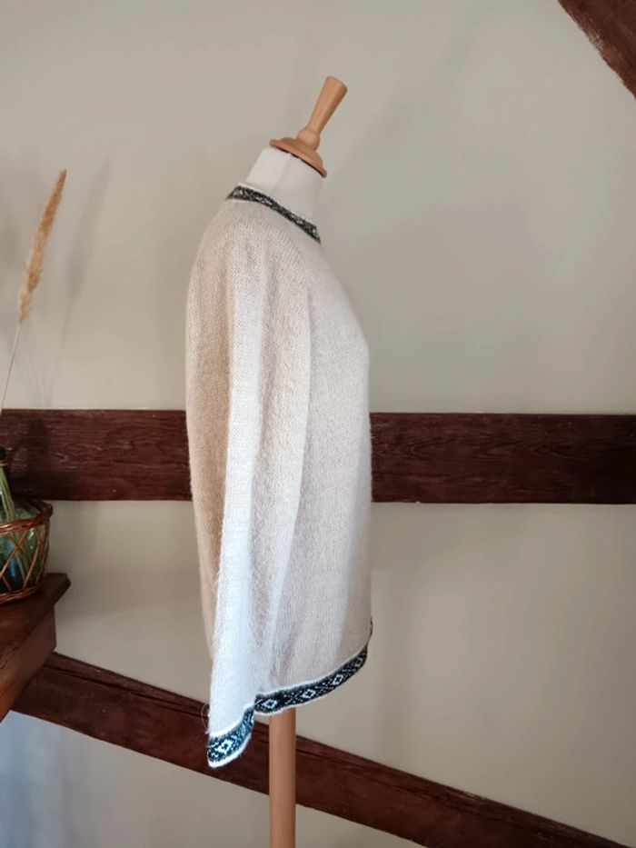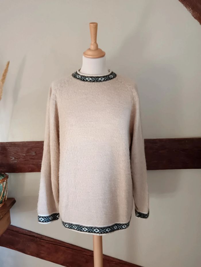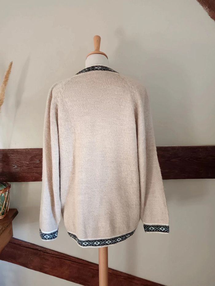 Pas d'envoi Vinted go, merci - ✨ Pull en maille fine beige clair à liserés noir blanc marrons col, bas et bouts de manches Pull péruvien typique, aucune étiquette mais je suis certaine qu'il s'agit d'alpaga Très bon état Taille 42 Je le porte sur un 36 sur les photos et mesure 1m61 📏 Dimensions à plat : largeur poitrine 53cm, longueur 67cm ⚠️ Étant une entreprise déclarée payant des charges, merci de respecter mon travail en ne le bradant pas 🙏 #desibellesfripes42