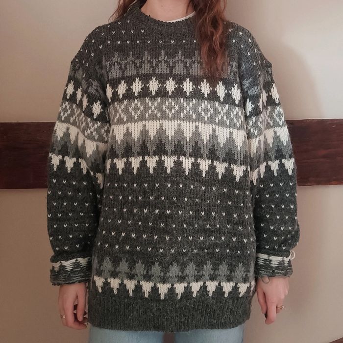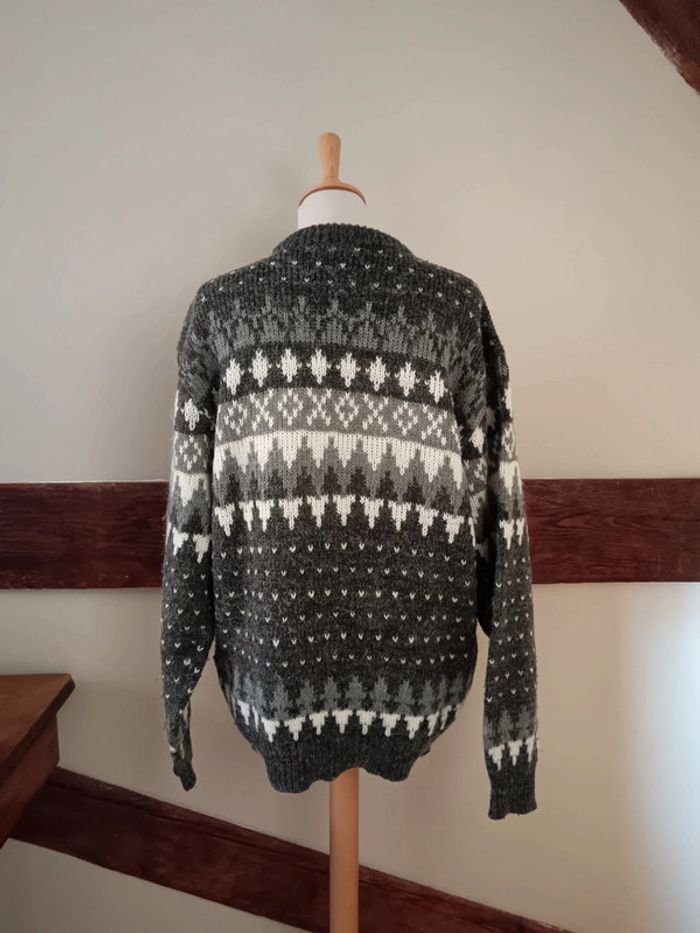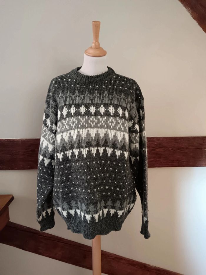 Pas d'envoi Vinted go, merci - ✨ Gros pull d'hiver jacquard gris et blanc C&A vintage années 90 80% acrylique 20% nylon grosse maille bien chaude Très bon état Taille XL soit une taille 42, coupe oversize Je le porte sur un 36 sur les photos et mesure 1m61 📏 Dimensions à plat : largeur poitrine 57cm, longueur 70cm ⚠️ Étant une entreprise déclarée payant des charges, merci de respecter mon travail en ne le bradant pas 🙏 #desibellesfripes42