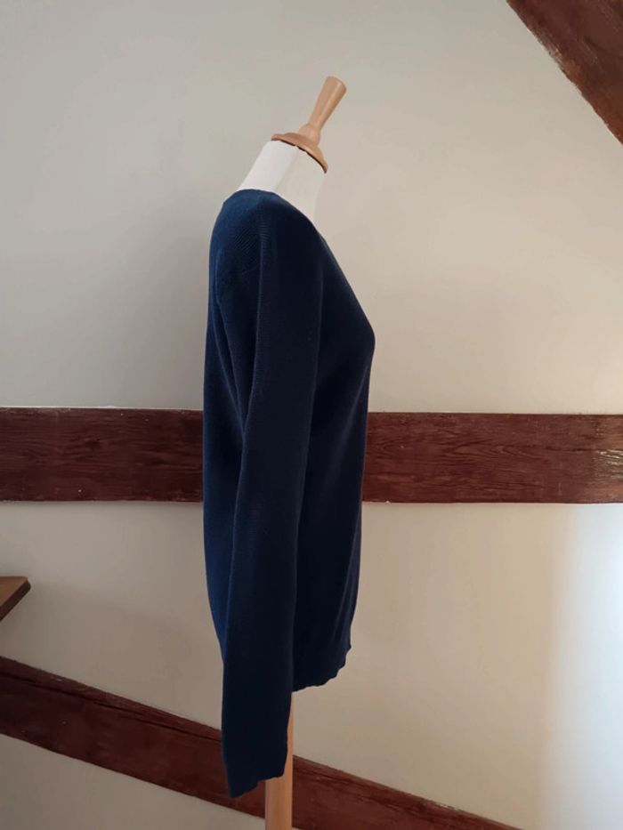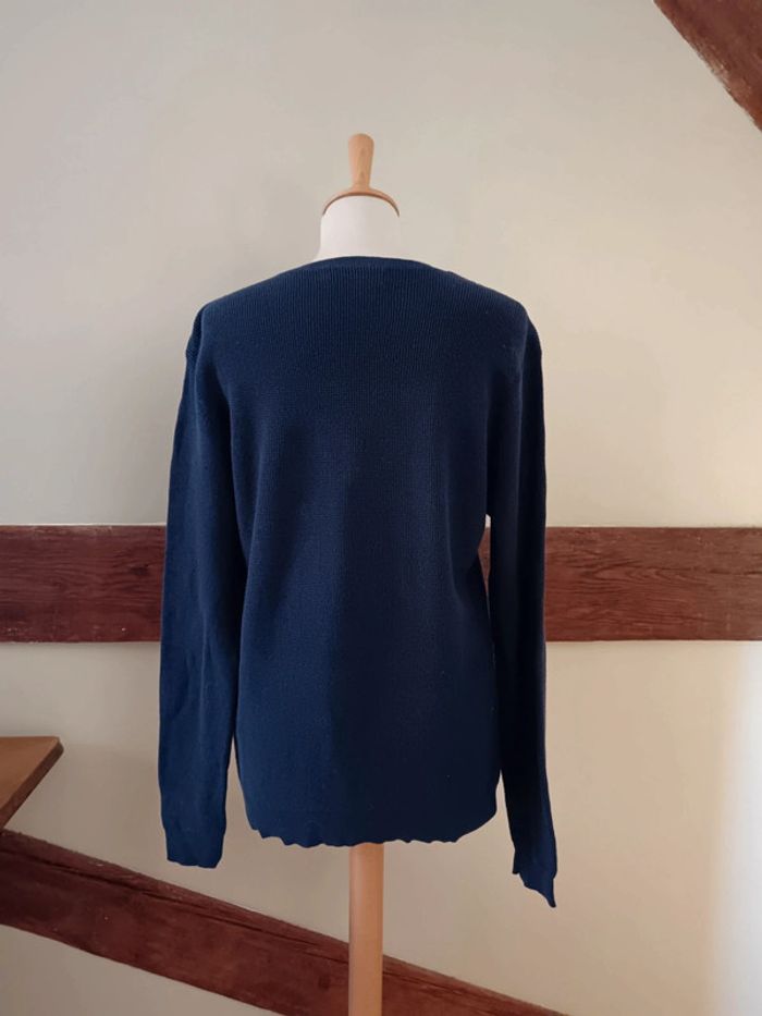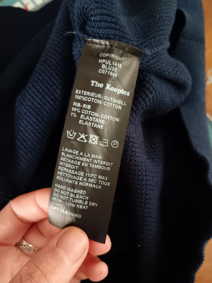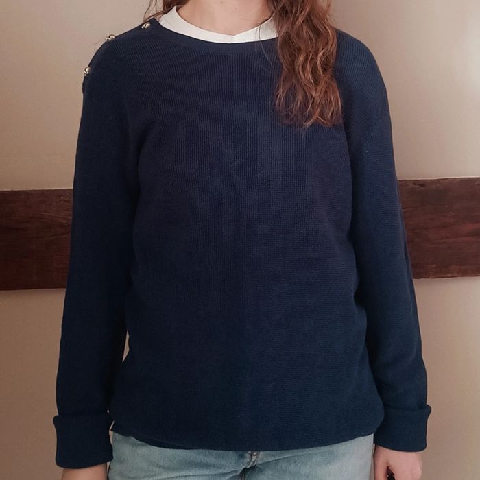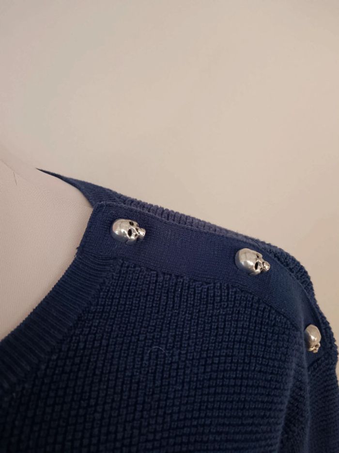 Pas d'envoi Vinted go, merci - ✨ Pull en maille côtelée bleu marine détails boutons pression argentés tête de mort épaule The Kooples 100% coton Très bon état Taille 38 ou 40 ajustée estimée Je le porte sur un 36 sur les photos et mesure 1m61 📏 Dimensions à plat : carrure 45cm, largeur poitrine 50cm, longueur 67cm, longueur manches 64cm ⚠️ Étant une entreprise déclarée payant des charges, merci de respecter mon travail en ne le bradant pas 🙏 #desibellesfripes40 #thekooples
