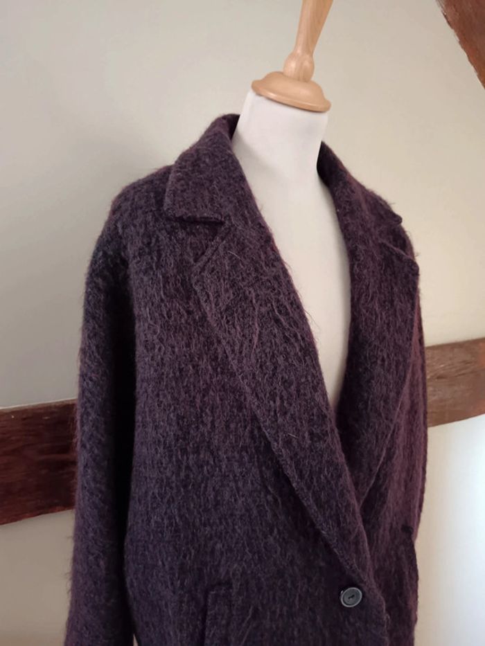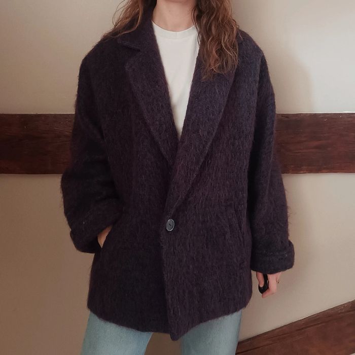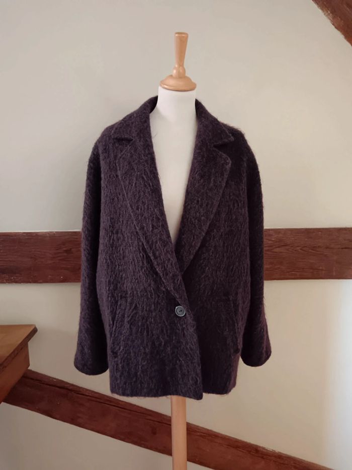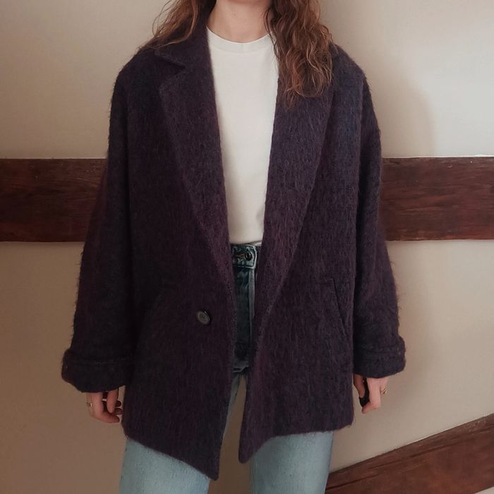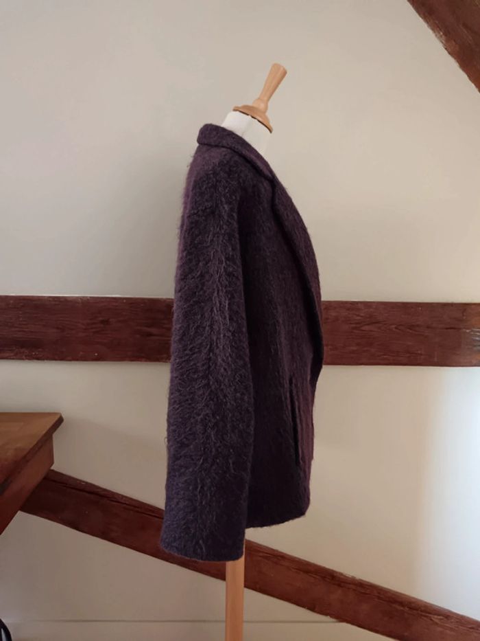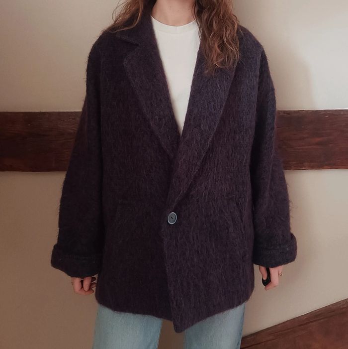 Pas d'envoi Vinted go, merci - ✨ Manteau court coupé ample oversize, manches larges, grand col revers et poches Coloris bleu marine foncé chiné violet Made in France, vintage circa années 60/70 90% laine 10% mohair, entièrement doublé Très bon état Taille 40 ou 42 estimée Je le porte sur un 36 sur les photos et mesure 1m61 📏 Dimensions à plat : largeur poitrine 59cm, longueur 76cm, longueur manches à partir du col 76cm, largeur bas 56cm ⚠️ Étant une entreprise déclarée payant des charges, merci de respecter mon travail en ne le bradant pas 🙏 #desibellesfripes40 #desibellesfripes42