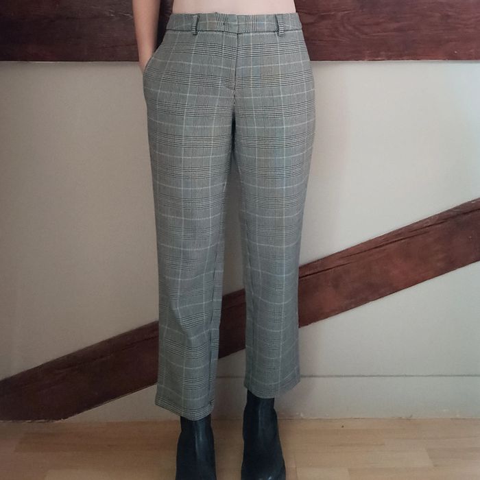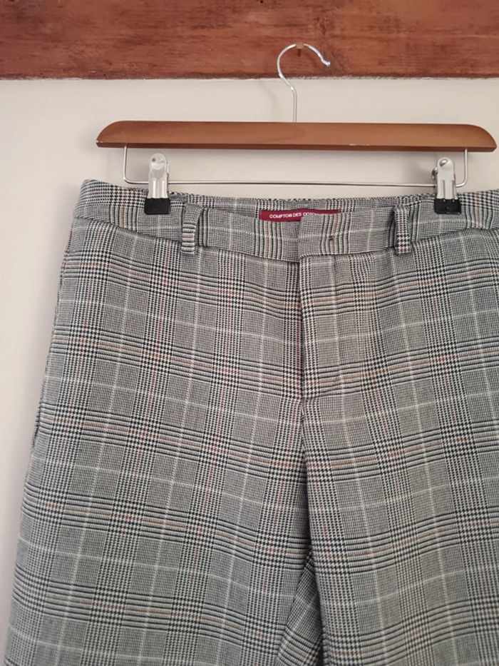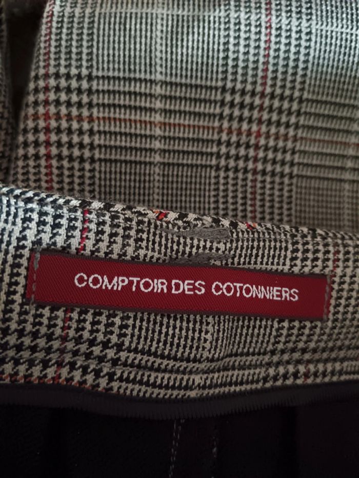 Pas d'envoi Vinted go, merci - 📏 Pantalon chino gris à carreaux motif Prince de Galles Comptoir des Cotonniers 63% polyester 33% viscose 4% élasthane, tissu épais et chaud État impeccable Taille 38, je le porte sur un 36 sur les photos et mesure 1m61 📏 Dimensions à plat : largeur taille 38cm, fourche 24cm, hanches 52cm, longueur totale 89cm ⚠️ Étant une entreprise déclarée payant des charges, merci de respecter mon travail en ne le bradant pas 🙏 #desibellesfripes38
