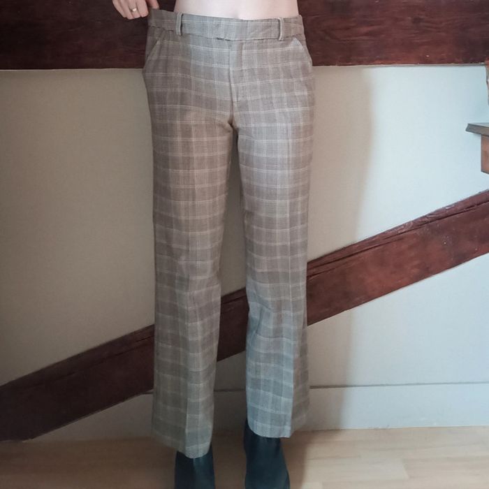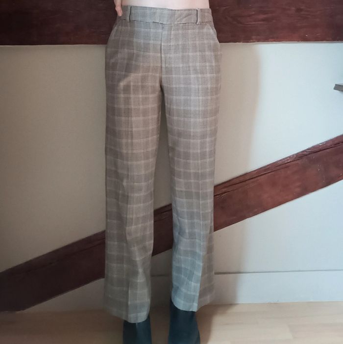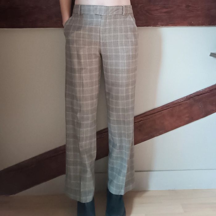 Pas d'envoi Vinted go, merci - ✨ Pantalon taille normale jambe droite large motif carreaux prince de Galles marron clair Caroll, fabriqué en France, vintage 96% laine 4% élasthane État impeccable Taille 40 sur étiquette mais conviendra plutôt à une taille 38 actuelle, je le porte sur un 36 sur les photos et mesure 1m61 📏 Dimensions à plat : largeur taille 38cm, fourche 25cm, largeur hanches 49cm, largeur cuisse 29cm, longueur totale 91cm ⚠️ Étant une entreprise déclarée payant des charges, merci de respecter mon travail en ne le bradant pas 🙏 #desibellesfripes38