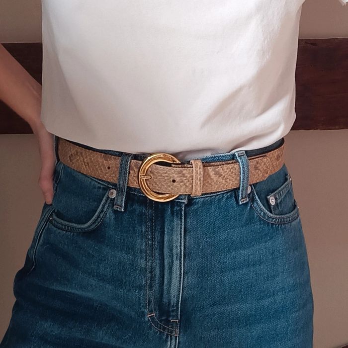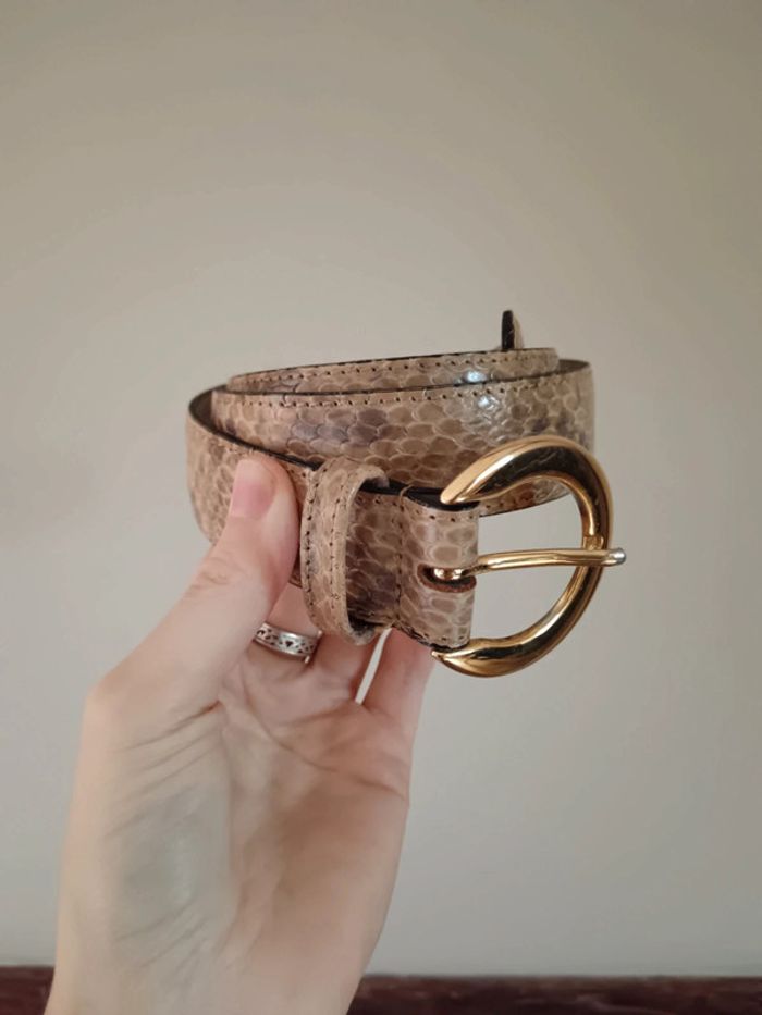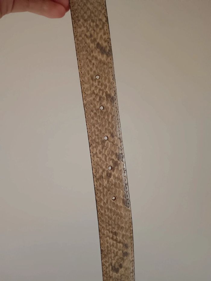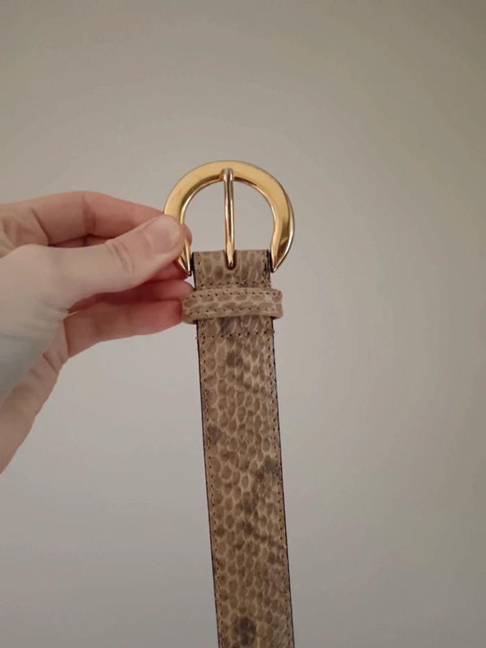 Pas d'envoi Vinted go, merci - ✨ Ceinture beige marron clair effet écailles de reptile Affinités, Armand Thierry, made in France Croûte cuir vachette enduite, doublure synthétique Très bon état, à noter que l'enduit interne a tendance à partir au niveau des trous et que trois trous commencent très légèrement à craqueler (à l'intérieur uniquement, comme neuve à l'extérieur, voir les photos) Taille 75 ok 36 📏 Dimensions : tour de taille de 70 à 80cm, largeur 3cm ⚠️ Étant une entreprise déclarée payant des charges, merci de respecter mon travail en ne le bradant pas 🙏