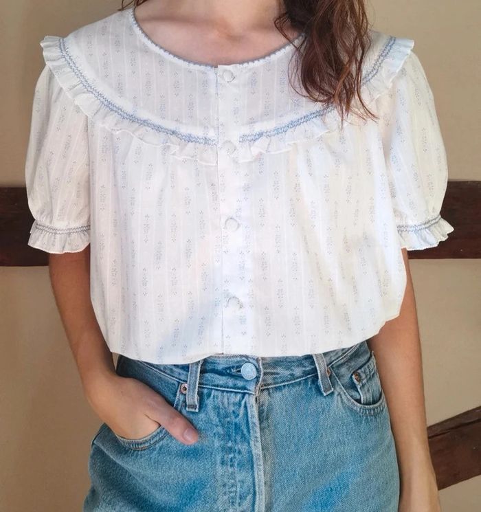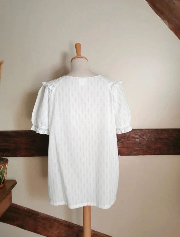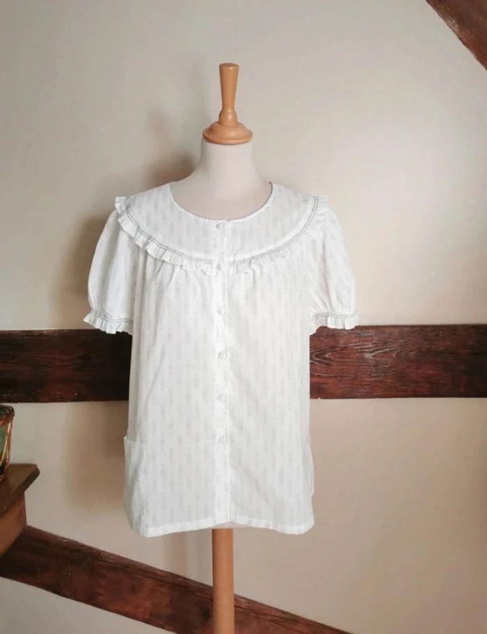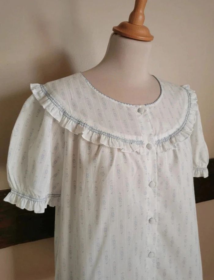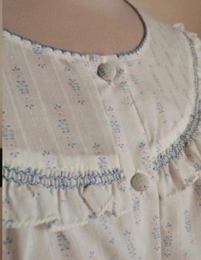 💐 Réductions sur les lots 💐 2 articles : -5% 3 & 4 articles : -10% 5 articles et plus : -15% ⚠️ Pas d'envoi Vinted go, merci Étant une entreprise déclarée payant des charges, merci de respecter mon travail en ne le bradant pas 🙏 ✨ Jolie blouse ou chemise de nuit blanches romantique bohème à petites fleurs rose et bleu pâles, volants poitrine et manches froncées Poche hanche droite Lingelor made in France 65% polyester 35% coton, légère transparence Très bon état Taille 46 sur étiquette mais taille plutôt comme du 42 Je la porte sur un 36 sur la photo 📏 Dimensions à plat : largeur poitrine 53cm, longueur 66cm #desibellesfripes42
