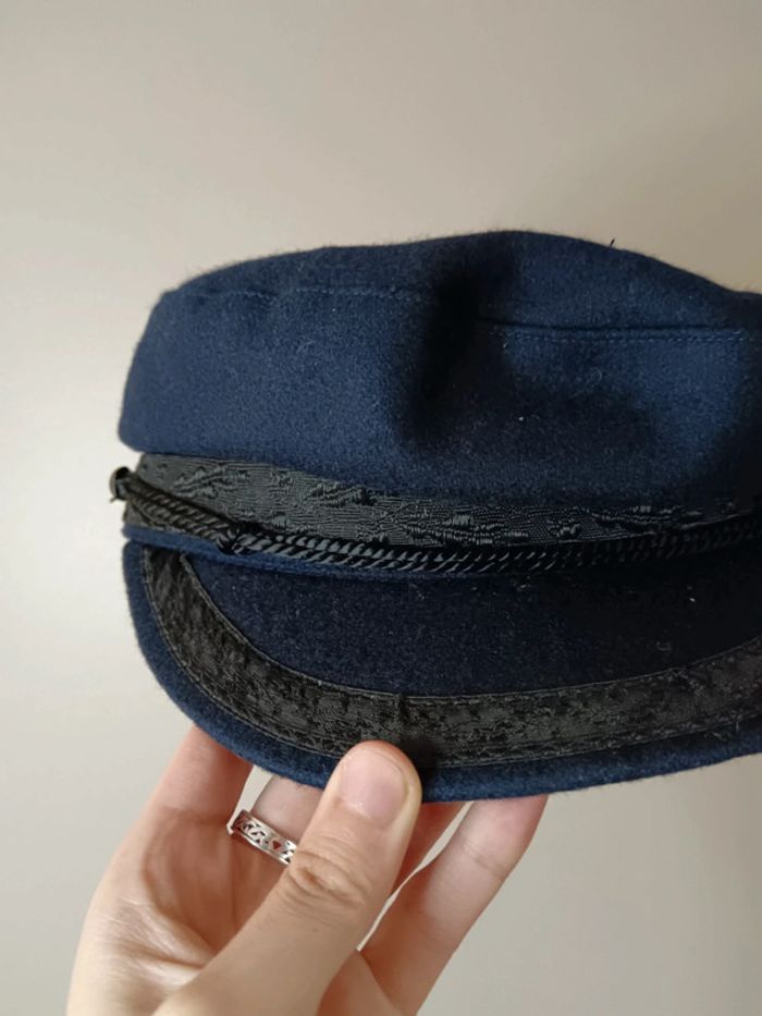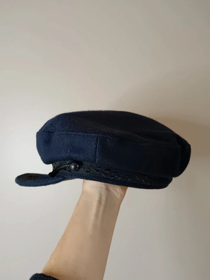 Pas d'envoi Vinted go, merci - ✨ Casquette de marin gavroche bleu marine à galon noir brodé 100% laine Très bon état Tour de tête 58cm ❗ Étant une entreprise déclarée payant des charges, merci de respecter mon travail en ne le bradant pas 🙏