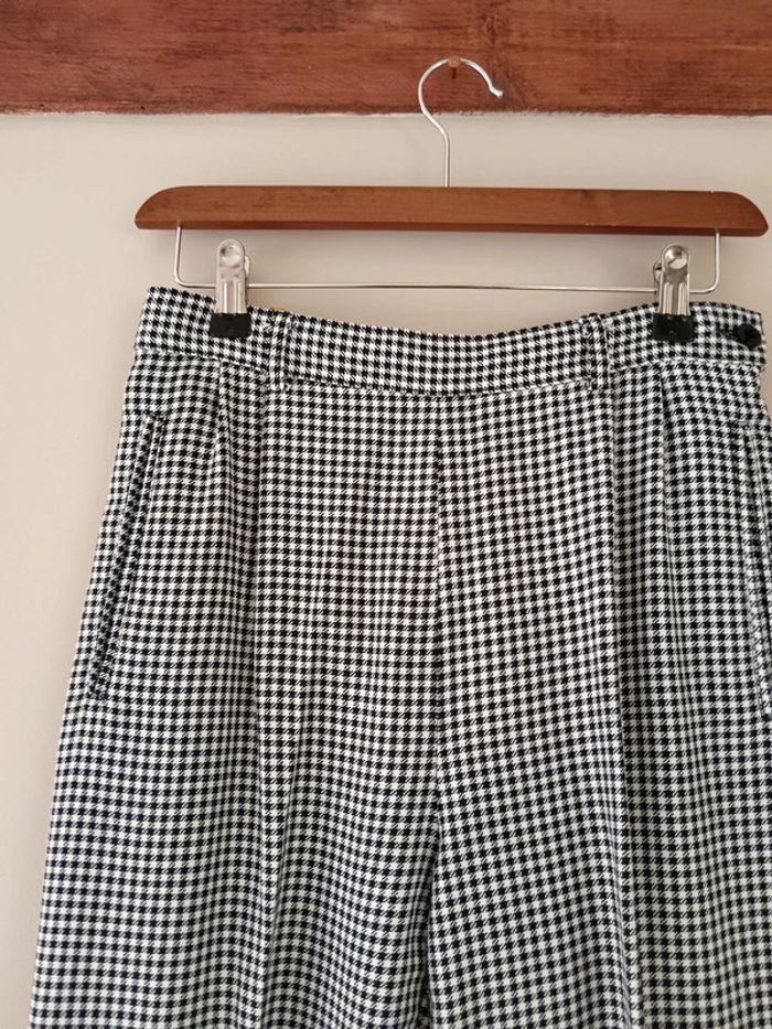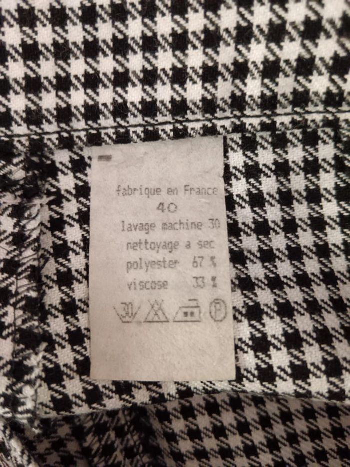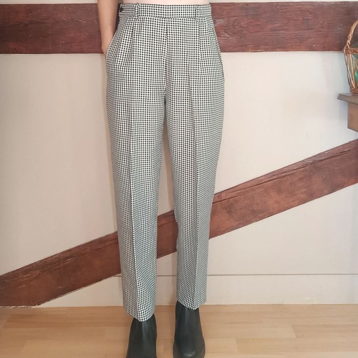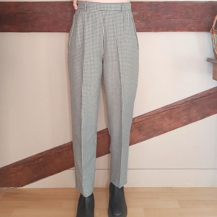 Pas d'envoi Vinted go, merci - ✨ Pantalon à pinces taille haute jambe droite vichy petits carreaux noirs et blancs Fabriqué en France 67% polyester 33% viscose Très bon état Taille 40 sur étiquette mais conviendra plutôt à une taille 36 actuelle Je le porte sur un 36 sur les photos et mesure 1m61 📏 Dimensions à plat : largeur taille 35cm, fourche 30cm, hanches 50cm, longueur totale 94cm ❗ Étant une entreprise déclarée payant des charges, merci d'éviter les négociations de prix dignes d'un marché aux puces et de respecter mon travail en ne le bradant pas 🙏 #desibellesfripes36