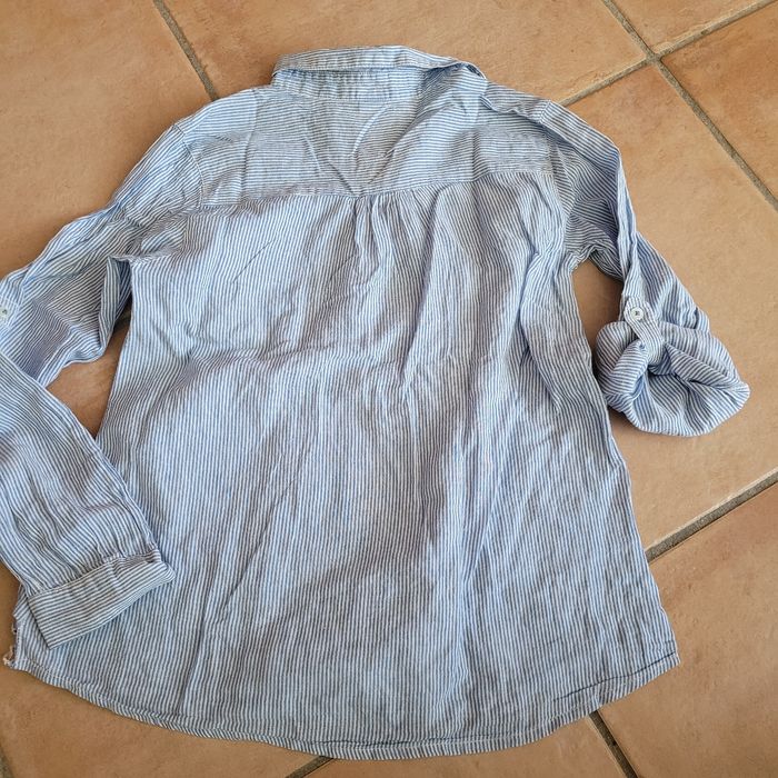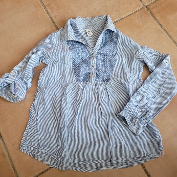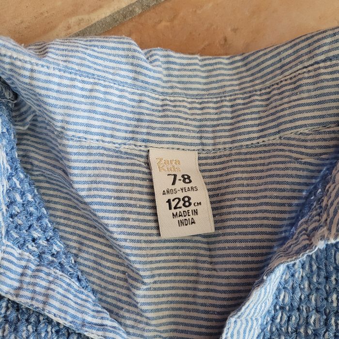 Chemise blouse Zara 8 ans rayée bleu et blanc. Manches longues retroussables par lien. Broderie à l avant. Très bon état. Envoi dans la journée en mondial relay ou chronoshop2shop.