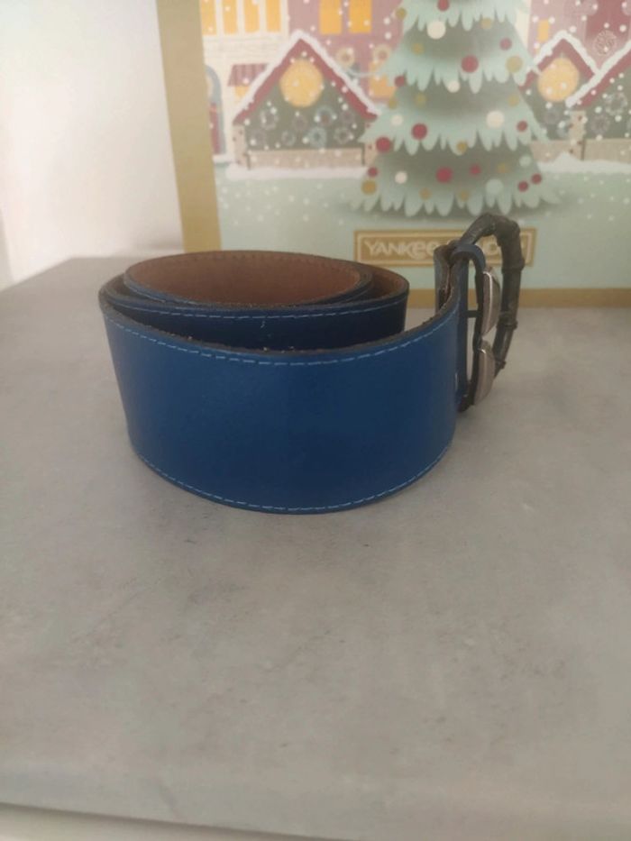 Vintage ceinture en croûte de cuir bleu - photo numéro 1