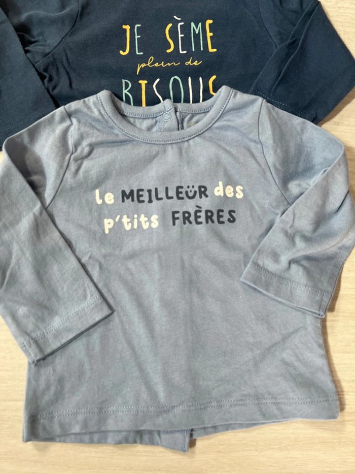2 tshirts manches longues bleus 3 mois - photo numéro 2