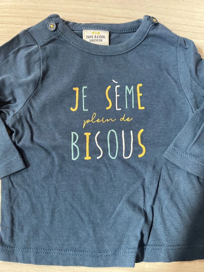 2 tshirts manches longues bleus 3 mois - photo numéro 5