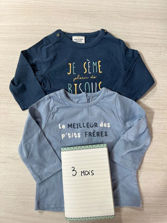 2 tshirts manches longues bleus 3 mois - photo numéro 1