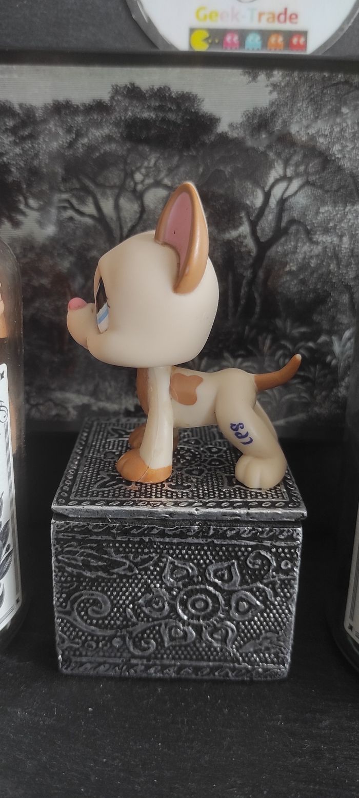 Information générale : Référence : LPS00330  remise en main propre possible : Vertou (44) #geektradelpschien Maj : 25 05 11 Cumul des frais de port : oui Minimum de commande : 5€ hfp Description de l'article : Perte de peinture : pattes , queue , oeil Stabilo / marqueur / feutre :  un point de bic noir imprégné ( estompé) sur une cuisse arrière Plastique abîmé : non Autre défaut : trace de rouille sous le cou , je sais pas si il y a un défaut de peinture sous le cou si ça a été repeind ou autre je vous met une photo Tige : transparente Demande d'authenticité sur internet : non Compléments de description:  L'objet est exactement comme sur les photos, vous achetez ce que vous voyez les photos font entièrement partie de la description.  Petit nettoyage à prévoir  Pour plus d'informations vous pouvez me contacter directement je vous répondrais avec plaisir  Transport :  Les frais de port comprennent les frais du transporteur, le carton et le calage nécessaire à la bonne réception de votre colis.  Envoi sous format de colis  Envoi avec numéro de suivis systématique Achat multiple:  Plusieurs figurines peuvent être mis dans un même carton ( poids finit du colis 250g), contactez moi avant d'acheter afin de grouper les frais de port   Référencement : #geektradelps #hasbro #jouet #toy #enfant #collection #figurines #animaux #custom #pet  #lps , #petshop , #mylittlestpetshop