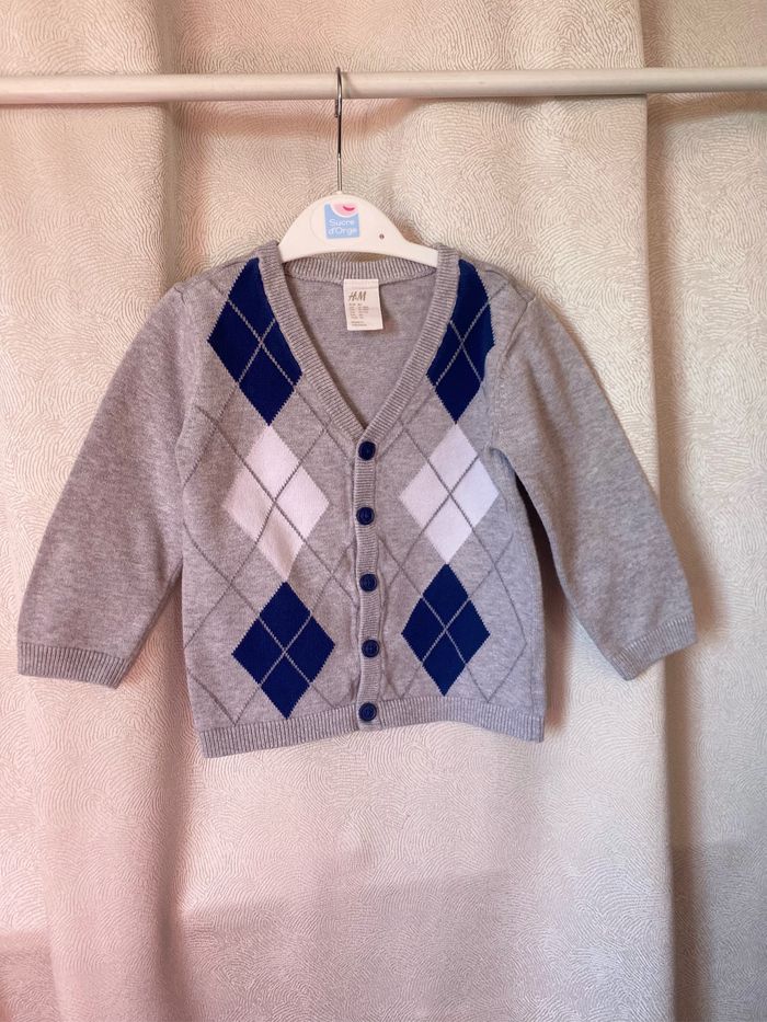 Gilet gris et bleu Losanges burlington manchester  Taille 18 mois -2 ans 86 cm  100% coton  H&M - photo numéro 1