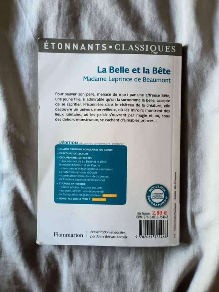 Bonjour à vendre livre la belle et la bête Madame leprince de Beaumont. Envoi rapide et soigné 👌🙃 Penser au lot 😉