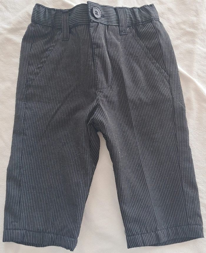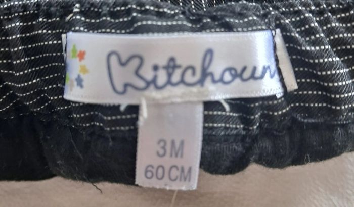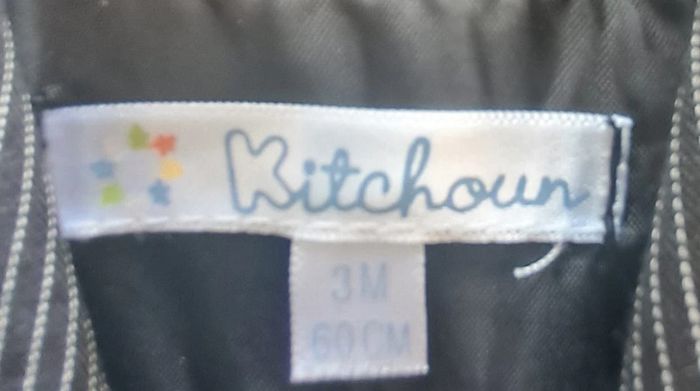 Ensemble bébé costume pantalon et gilet sans manche de la marque kitchoun 3 mois en bon état général 84% polyster et 16% viscose