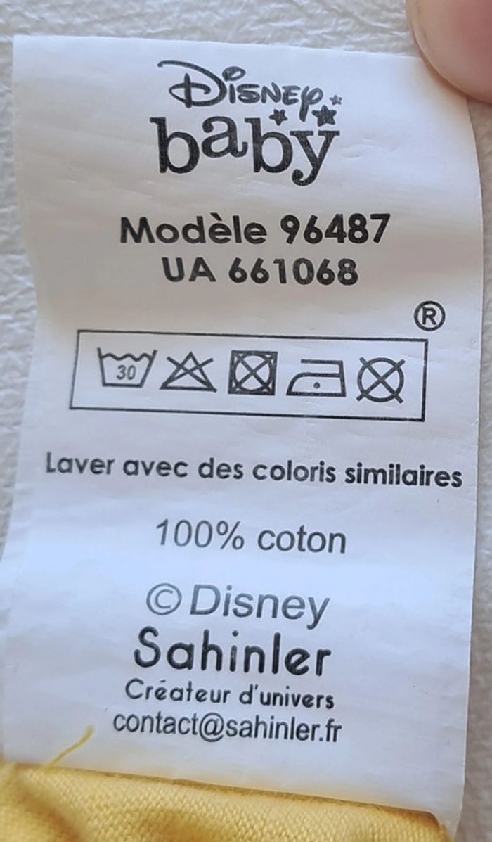 bodies disney le roi lion 6mois jaune 100% coton en bon état général