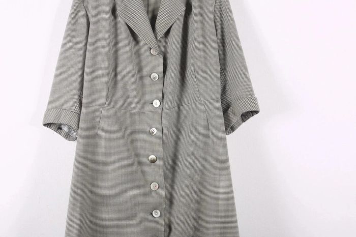 Belle Petite robe gris et blanc vintage 70-80's à motifs pied de poule handmade (#23677) - photo numéro 6