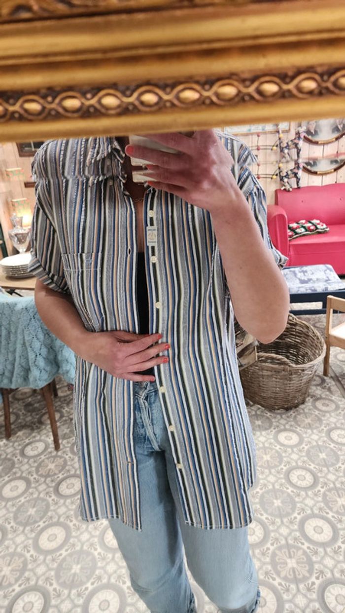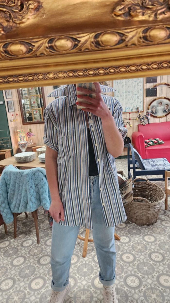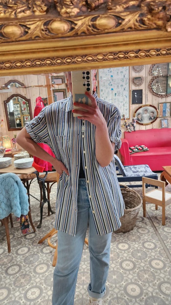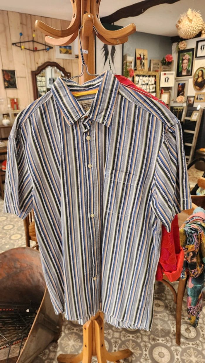 🌼 Remise sur les lots 🌼 -5% pour 2 articles -10% pour 3 articles -15% pour 4 articles -20% pour 5 articles et + www.instagram.com/kozhaevintage 🫶 Jolie chemisette taille L homme qui ira jusque 42 femme En coton Rayures