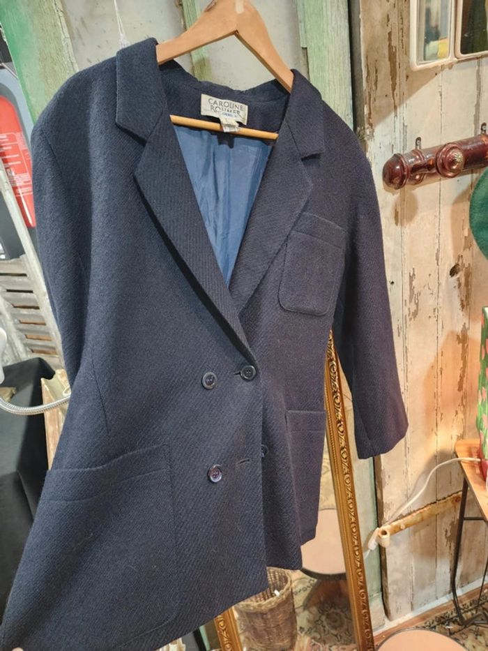 Superbe blazer vintage en pure laine bleu marine vierge fabriqué en hongrie - photo numéro 2