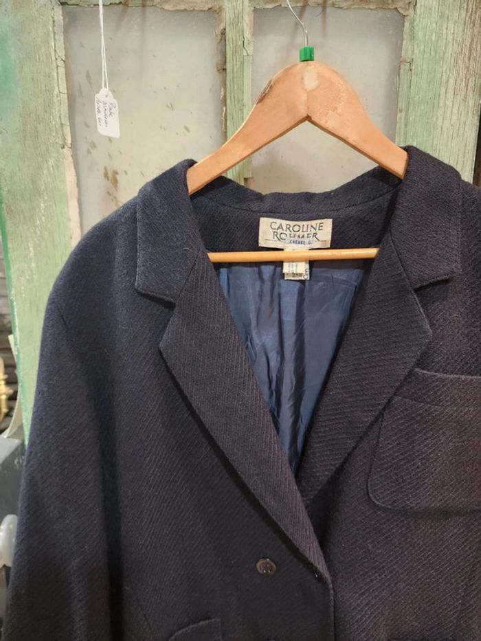 Superbe blazer vintage en pure laine bleu marine vierge fabriqué en hongrie - photo numéro 7