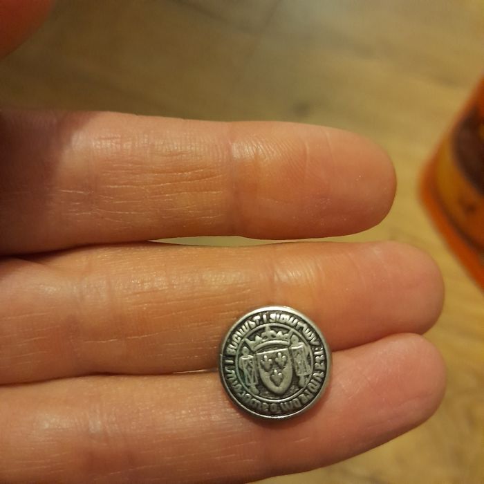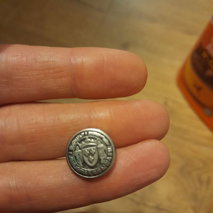 Bouton vintage argenté blason fleur de lys et couronne - photo numéro 1