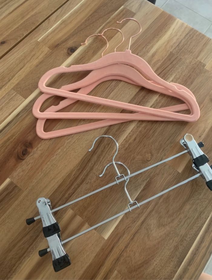 Lot de 10 cintres velours rose ou bleu et 10 pince taille enfant