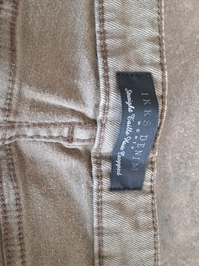 Jean kaki taille 44 Denim straight cropped Taille haute, il n'a plus son étiquette composition Elasthane et coton, jean agréable à porté, souple En très bon état Ikks
