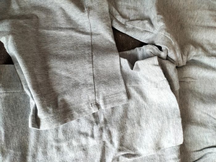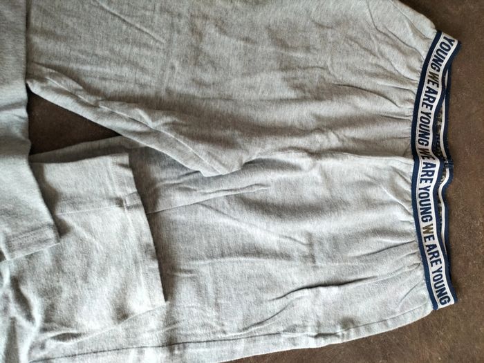 Haut blanc MC, une petite tâche sur le devant Bas gris clair taille élastiquée, Il n'a plus son étiquette composition En très bon état