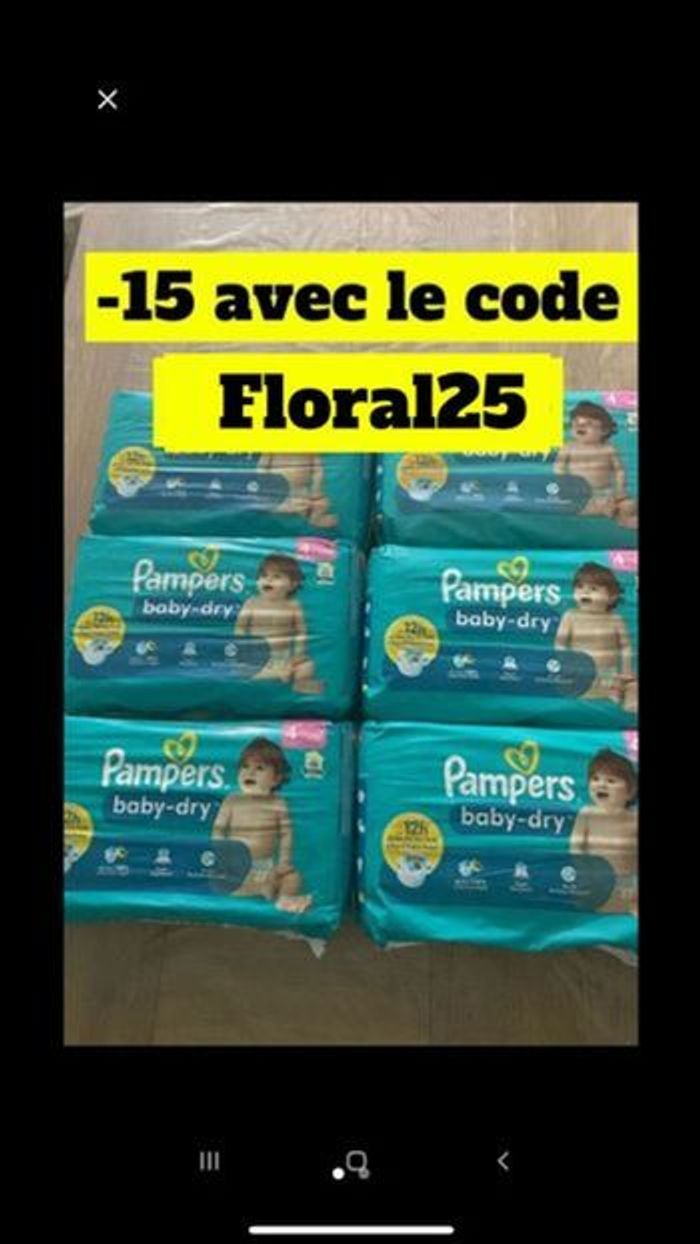 Le lots de six paquets de couches pampers baby dry taille 5 neufs -15€ avec le code promo