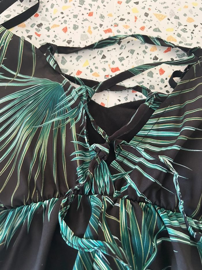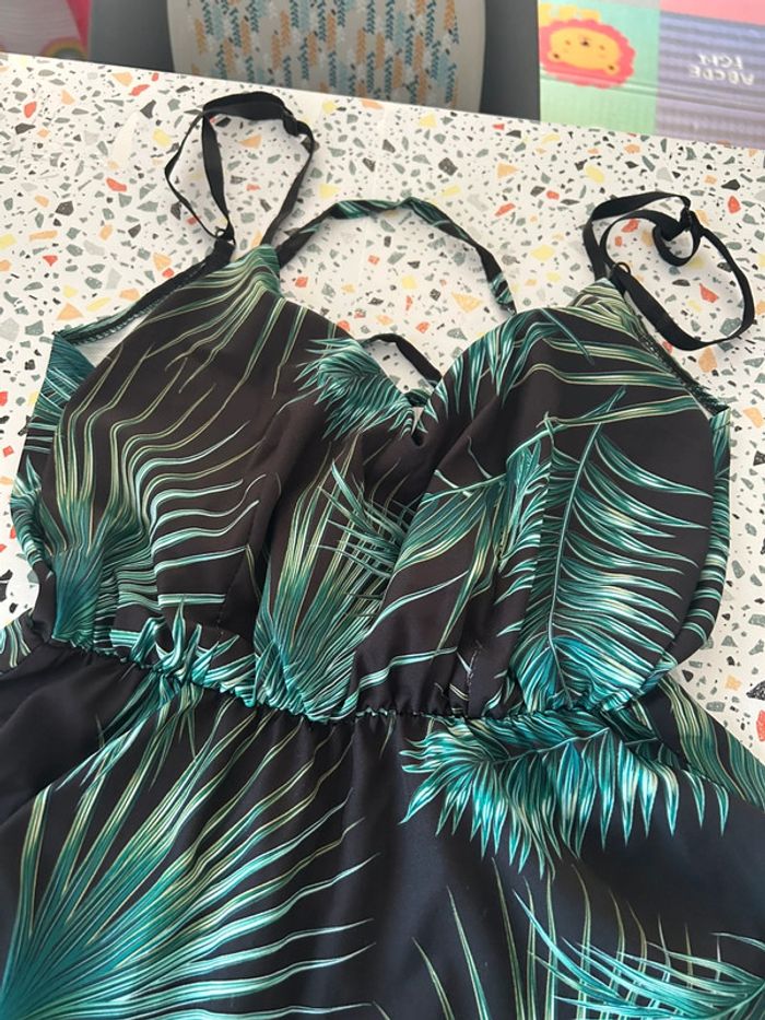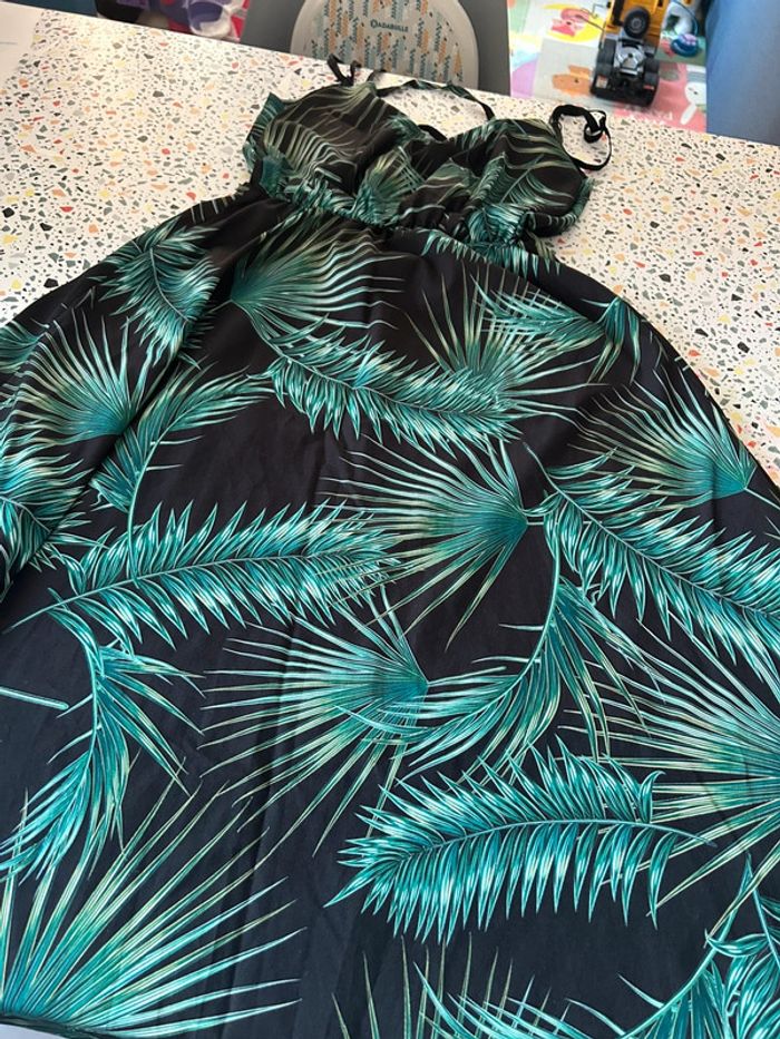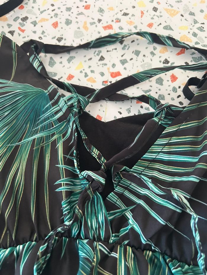 Magnifique robe longue à fine bretelles et et ceinture à lacets dans le dos en excellent état De couleur noire et verte Taille unique plutôt pour un 38/42 #amelievetementfemme