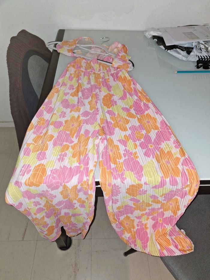 Salopette été fille zara T13/14 ans Orange rose blanc  très bon état - photo numéro 1