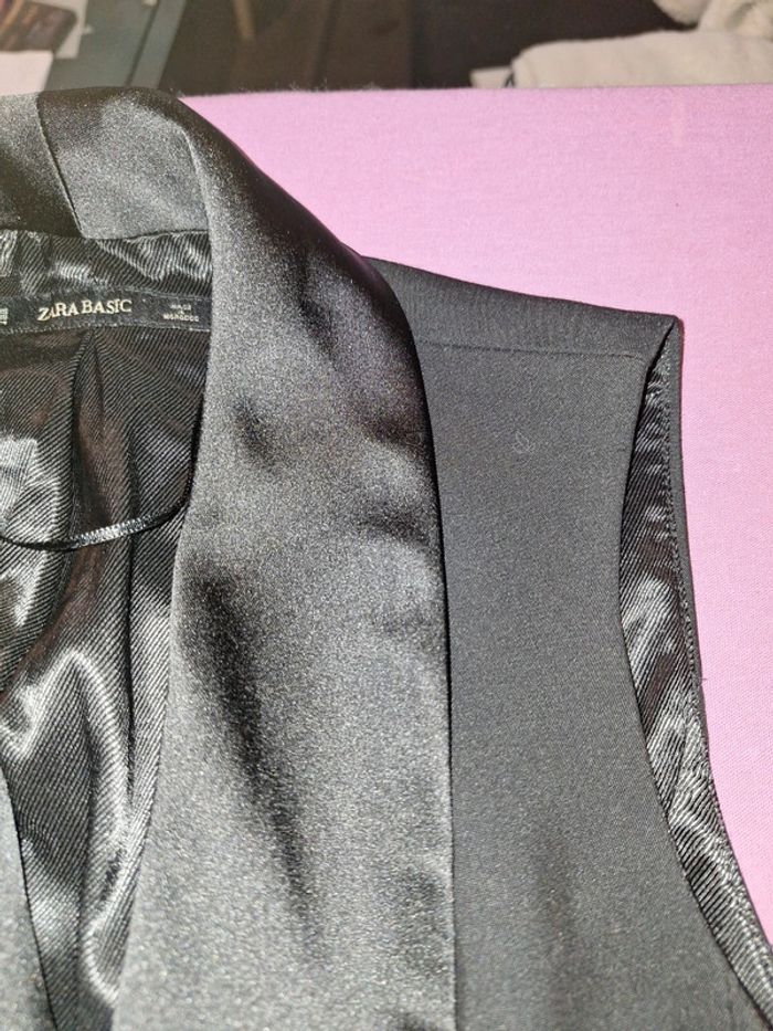 Robe veste femme Zara noire  sans manche col satin T Xs. Excellent état - photo numéro 4