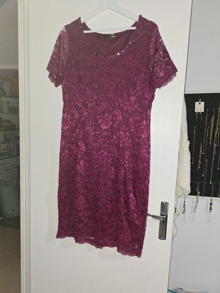 Robe dentelle framboise t 46  bon prix neuve - photo numéro 2