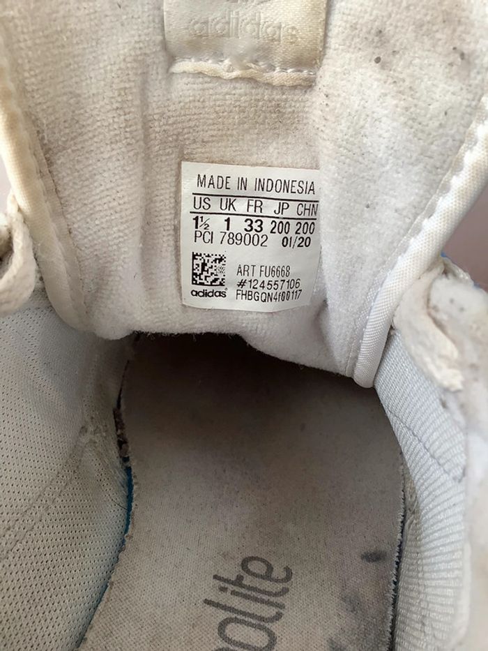 Baskets Adidas blanches à lacets, avec bandes brillantes, fille, taille 33 - photo numéro 5