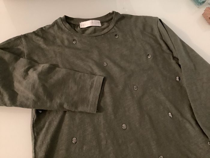 Tee shirt manches longues Zara boys T6ans très bon état kaki - photo numéro 2